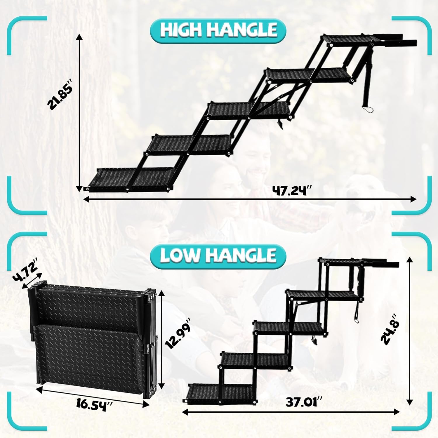 About this item 【Lightweight yet sturdy & Side reinforced bracket】: Made of rust-resistant, high-quality metal, Zendova car dog ramp is strong and durable, weighing just 9.5 lbs while remaining sturdy enough to support dogs weighing up to 200 lbs. We have also upgraded the side reinforcement bracket, which are more stable and will not collapse, ensuring the safety of your dog. non-scratch rubber handle protects your car’s paint while providing extra stability. 【Safety & Non-slip Dog Steps】: Non-sliprubber-coated surface prevents pets from slipping when climbing stairs, We also added the exclusive patented dog bone pattern design, which is fun and non-slip, your dog will love it! Updated carabiner safety tether for securing the stairs to the vehicle offers double protection for your dog, ensuring that your dog can climb safely without injury. 【Portable and Foldable Dog Stairs】: Zendova dog steps for the car fold to 16" x 5" x 13" to put into the car, which is convenient to carry without taking up much space. Height adjustable range of 21"-25". It can be adjusted to the right height as needed, offering an ideal slope for pets to access cars, trucks, and SUVs with ease.To ensure our dog steps fit your vehicle, please measure the height from the ground to your trunk or side door before purchasing. 【Easy To Use And Versatile】: Our 5-step pet stairs perfectly assist your furry friends in accessing vehicles, beds, sofas, as well as grooming or vet tables. The lightweight design makes these stairs a must-have for travel, picnics, camping, and other family outdoor activities. Designed to be gentler on joints and prevent injuries, these stairs are ideal for short-legged, elderly, disabled, or injured dogs. 【Worry-Free After-Sale Service】: Zendova dog stairs prioritize pet safety and comfort. We offer a 1-year quality assurance guarantee and friendly customer service. Should you have any questions, feel free to contact us - we're more than happy to help! › See more product details