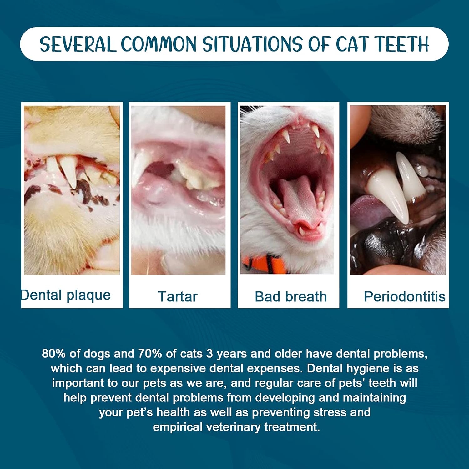 An easy way for pet parents to provide dental health solutions that work!◆◆◆Tartar ControlFormulated with natural ingredients that work as a dog breath freshener to fight and reduce tartar buildup, and whitens and brightens your dog's teeth.◆◆◆Fresh BreathNatural ingredients ensure optimal dental health for your pets. Fights bad breath and maintains healthy teeth and gums for dogs and cats.◆◆◆Gum HealthGently and effectively eliminates bad breath, reduces tartar buildup, and whitens and brightens your dog's teeth. Herbs help soothe sensitive and inflamed gums.◆◆◆COMFORTABLE GRIPThe long handle is made from natural bamboo and the nylon bristles don't contain any BPA for your pet's safety. This double-sided dog tooth brush has a long, ergonomic bamboo handle that gives you a better grasp. ◆◆◆FOR DOGS & CATS OF ANY SIZEWhether you have a Shih Tzu or an Akita, our pet toothbrush's double heads can do the job. Each head is designed to clean pup teeth of every shape and size.Grime and tartar not only cause bad breath, but can also result in the loss of teeth and more serious dental hygiene issues. Bad teeth can lead to life-threatening and painful infections. These infections can damage the kidneys, heart, and liver. By regularly brushing your dog or cat's teeth, you will help to boost the health, happiness, and longevity of your canine and feline friends.