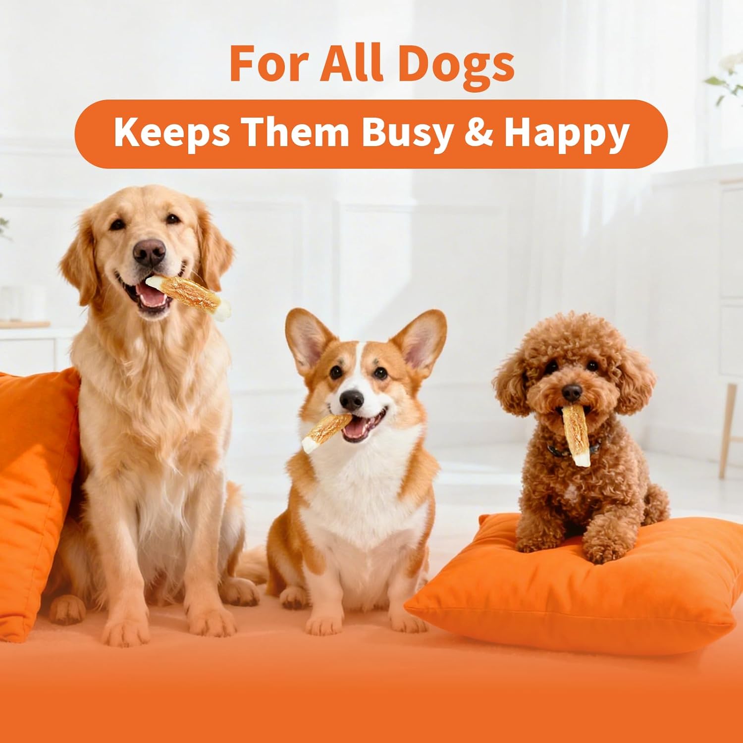 About this item - Crafted as premium chicken wrapped rawhide sticks, these dog rawhide chews are made from 100% chicken breast. With high protein and low fat, they provide a healthy, digestible snack—ideal for dogs with sensitive stomachs. - These chicken wrapped dog treats help reduce plaque and tartar while strengthening jaws and freshening breath. The textured surface encourages prolonged chewing, supporting oral hygiene in a tasty way. - The unique twist shape keeps dogs engaged while cleaning hard-to-reach teeth. These chicken treats for dogs satisfy chewing instincts—perfect as training rewards or calming dog rawhide chews. - Manufactured under strict U.S. food safety guidelines, all chicken wrapped rawhide ingredients are lab-tested for quality. A safe chewing experience recommended for dogs 10 lb and above. - Packed in a resealable pouch to maintain freshness, these chicken sticks for dogs are easy to store and ideal for travel. Each 5-inch twist delivers a delicious chicken treats for dogs your pet will love. › See more product details