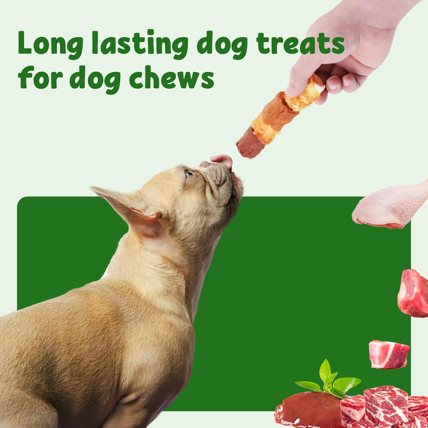 About this item 【Suitable for Large & Big Dogs Needing Durable Chew Options】These chew bones maintain durability for extended use, helping satisfy your dog’s natural chewing instincts. They also support dental health by aiding in teeth cleaning, which is essential for maintaining your large breed’s oral hygiene. 【Ideal for Medium Dogs】Crafted with a nutritious blend of natural chicken breast, chicken liver, beef, and cowhide sticks, these treats offer high protein and low-fat nutrition. The formula is designed for easy digestion and absorption, and it helps nourish your dog’s coat to support overall health. 【Helps Reduce Dog Stress & Encourage Calm Behavior】These satisfying dog kabob treats provide mental stimulation and a soothing chewing experience. They work well for dogs that tend to feel anxious, or when you want to create a quieter environment at home. 【Handmade & Heat-Dried for Nutrition & Safety】Each treat is handmade and dried at 80°C or above. This process removes excess moisture while helping retain more nutrients, ensuring the treats deliver nutritional value and safety for your beloved companion. 【Great for Training & Supporting Dental Health】These easily digestible treats combine four premium ingredients to support your dog’s overall wellness. They also assist with teeth cleaning and can satisfy the chewing needs of even the most persistent chewers among medium dogs and large breeds. › See more product details