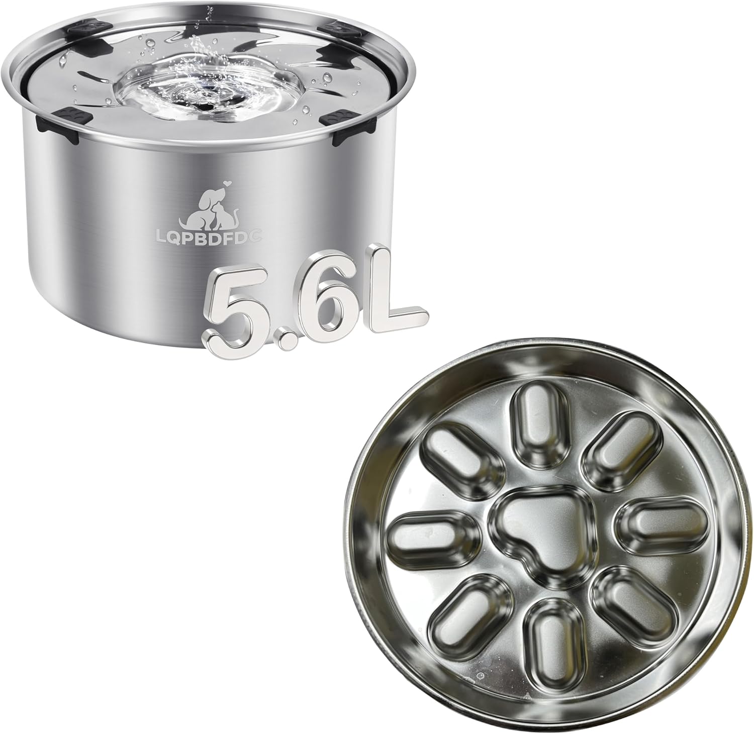 Feed your furry friend with the LQPBDFDC dog water bowlWhat's unique about our product?5.6L large capacitySuitable for small to large dogsMade of 304 food-grade stainless steelEasy to clean and can be thrown directly into the dishwasherIncludes:stainless steel Slow Feeder Dog BowlDog stainless steel drinking bowlFloating stainless steel drinking trayHookSpecifications:Material: 304 stainless steelCapacity: 5.6L/189 ozColor: Silver