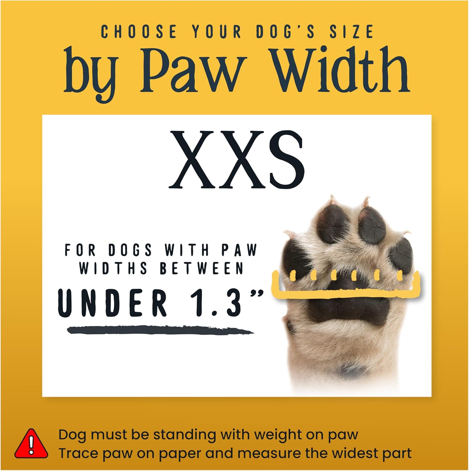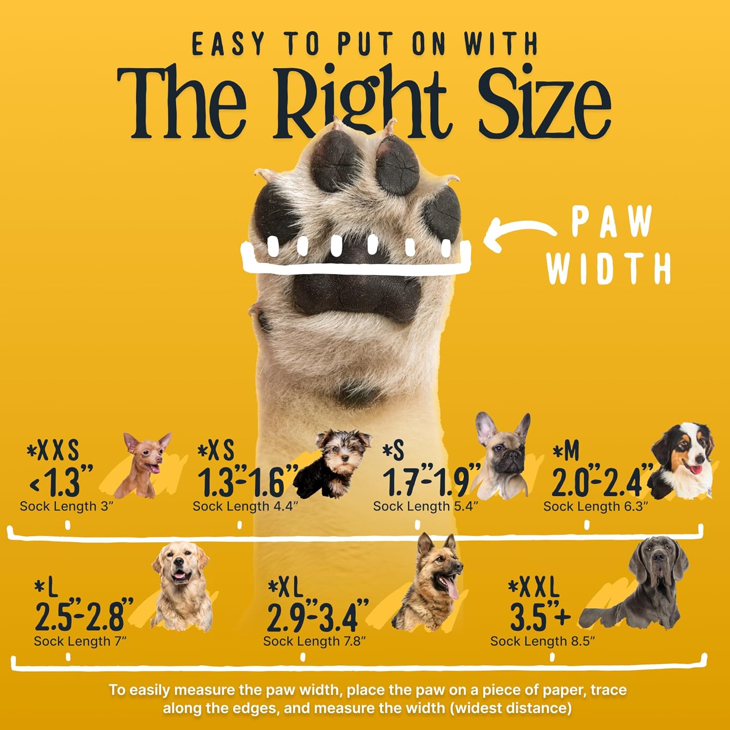 About this item XXS Size: Smaller than 1.3" paw width. Make sure to measure your pet while they are standing with weight on paw. Includes 4 dog grip socks made of elastic cotton nylon fabric that stretches. 3x More Grip: Performance grip is engineered to provide reliable traction even if the sock twists while dog is using them, making them the ideal anti slip dog socks for both senior dogs and active dogs alike. Senior Dogs: Specifically created with senior pet owners in mind. Maximum traction on hardwood floors and other slippery surfaces make them the perfect socks for dogs with joint and mobility issues. Patented Grip Design: Revolutionary product designed in USA to provide comfort, stability, and mobility support. Buttonless strap design prevents dog sores and allows for a comfortable fit. Multi-Functional: Suitable for large dogs, small dogs, and senior dogs, these socks provide paw protection for summer keeping your dog's paws safe from hot pavement, heat, and other potential hazards. › See more product details
