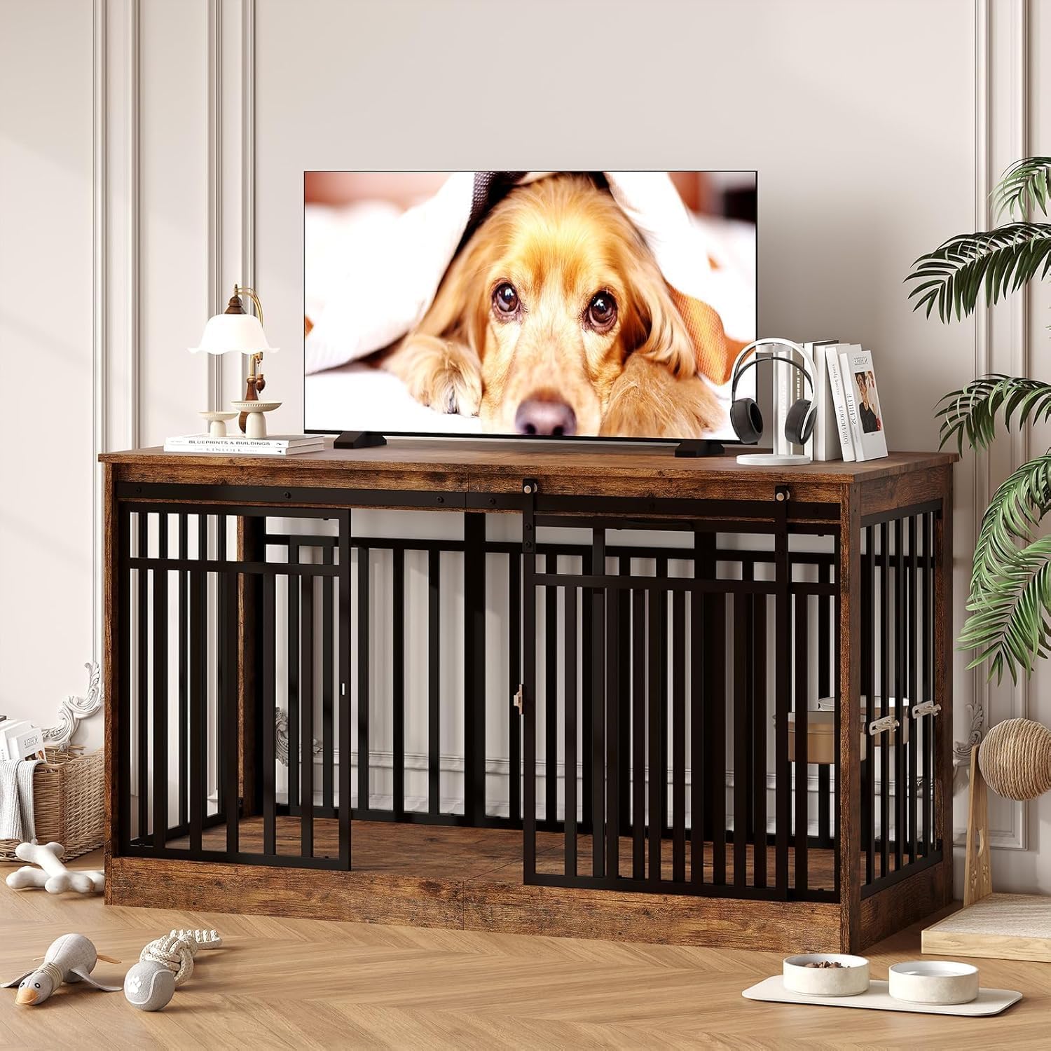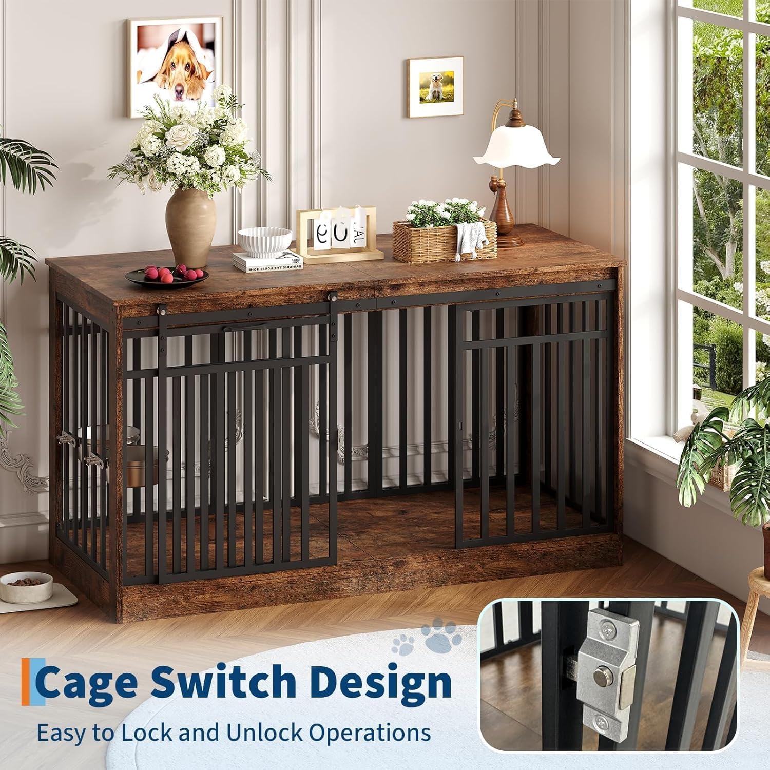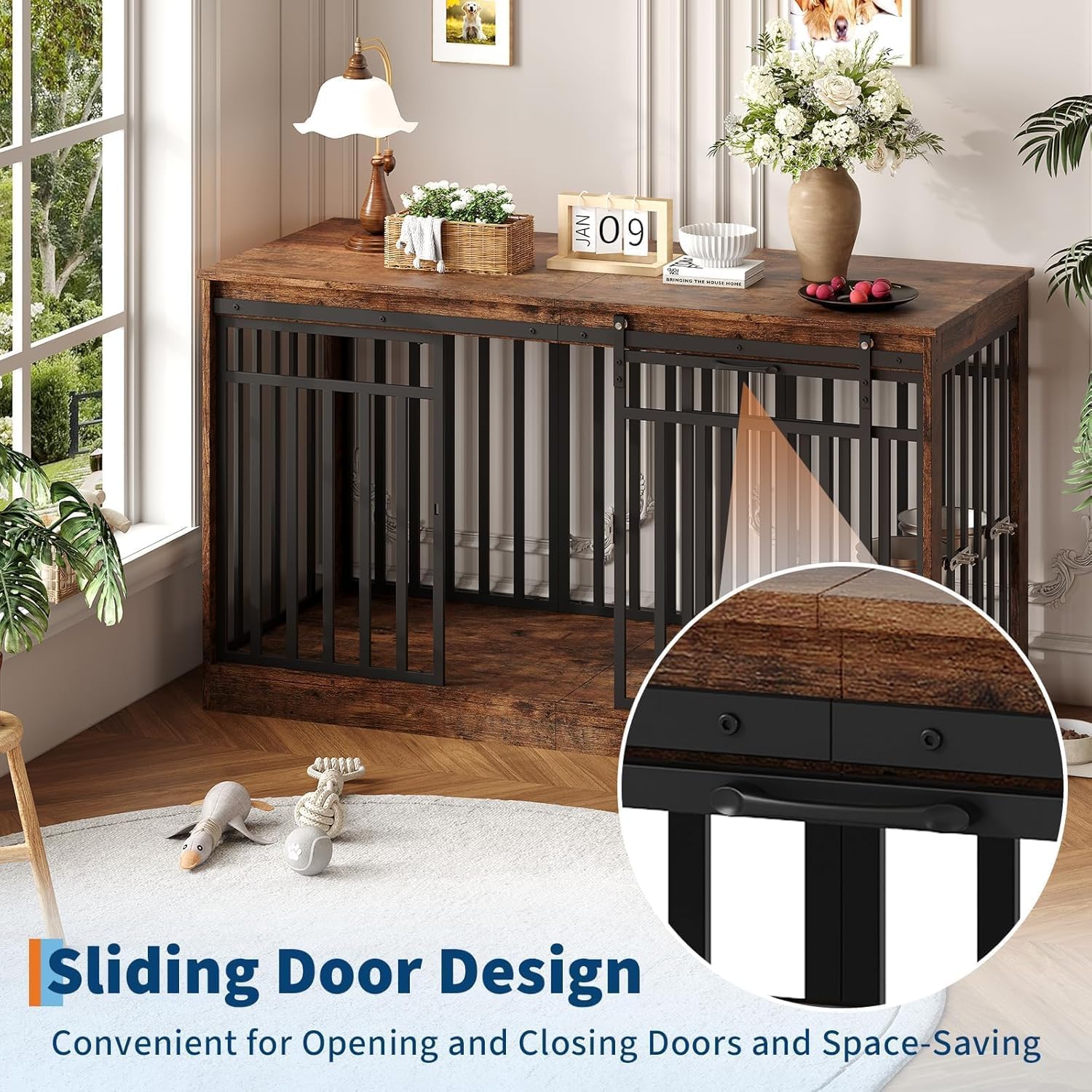 Picture your evening at home: you’re on the sofa, a drink on the side table, and your dog is resting quietly right beside you—in their crate that looks like furniture, not a cage. This dual-door dog crate is designed for real-life homes, with two access points so you can place it against a wall, next to the couch, or by the bed without blocking the doors. Your dog can move in and out more naturally, and the roomy interior gives them space to stand, turn, and stretch when it’s time to relax. Add their favorite mat or blanket and it becomes a spot they happily use for naps and nighttime sleep. Daily upkeep is simple thanks to the pull-out tray under the floor that catches fur and small messes; slide it out, wipe it, and you’re done. The flat, sturdy top works like a side table for lamps, books, or décor, helping the crate blend into your living room or bedroom instead of standing out. Built from chew-resistant materials with secure latches, it’s made for active dogs and regular use, giving you a reliable place for them to rest when you’re home or briefly away. This is a practical, space-saving way to keep your dog close, your room tidy, and your style intact.