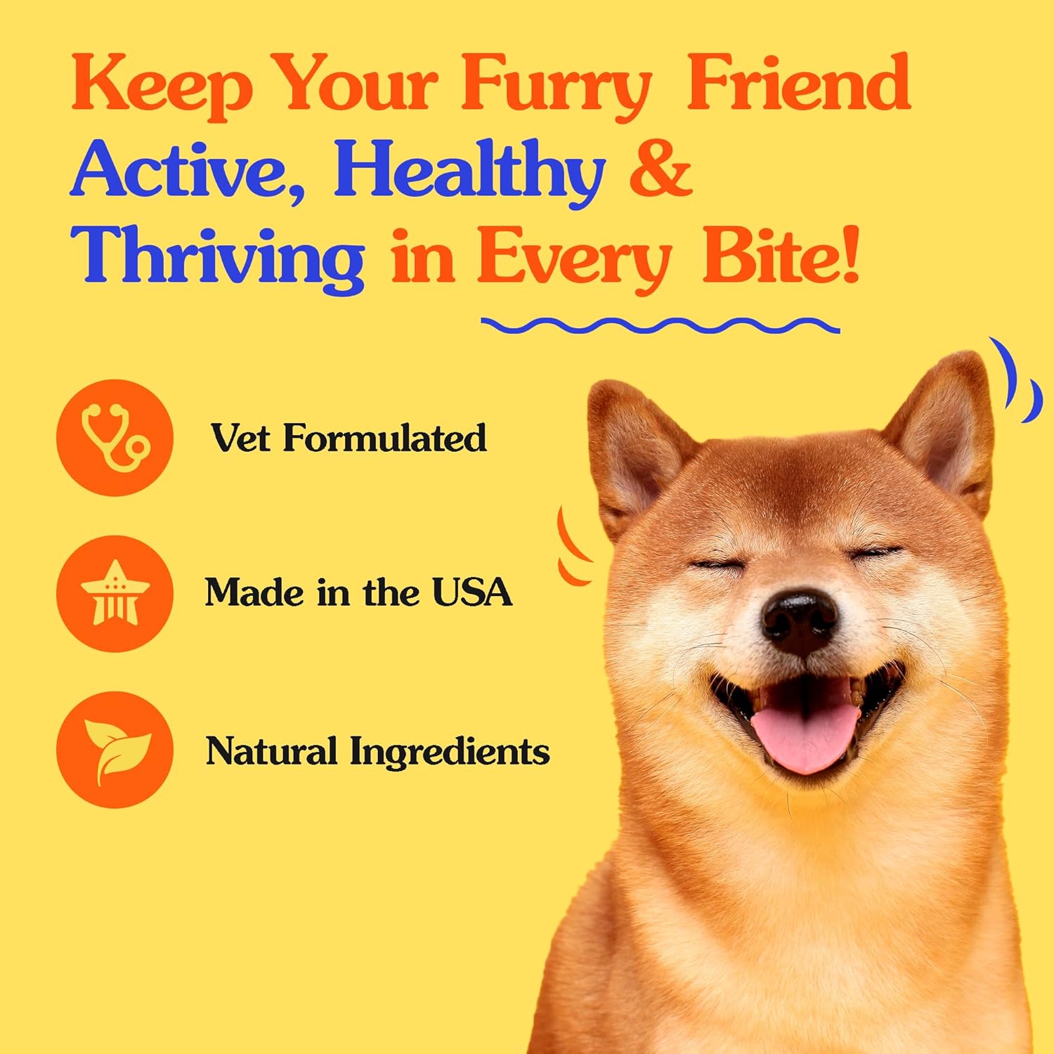 About this item COMPLETE JOINT, SKIN & COAT SUPPORT: Dr. Jay's Romps Dog Multivitamin Soft Chews is formulated with Collagen Type II plus essential nutrients like Vitamins A, C, E, Biotin & Zinc to support joint mobility and maintain a shiny coat and healthy skin. BOOST DIGESTION & IMMUNE HEALTH: Enriched with Vitamin B1 (Thiamine), this complete multivitamin supplement for dogs supports gut health, nutrient absorption, and your dog’s natural immune defenses from playful puppyhood through senior years. VET-FORMULATED WITH QUALITY INGREDIENTS: Created by veterinarians using carefully selected ingredients to deliver a balanced daily supplement that supports your dog’s overall health and wellbeing at every stage of life. MADE IN THE USA UNDER GMP STANDARDS: This premium dog multivitamin is produced in a certified GMP facility for quality, safety, and consistent nutrient levels you can trust. DELICIOUS SOFT CHEWS DOGS LOVE: These tasty soft chews supplement your dog’s diet and make daily multivitamin support easy and enjoyable, helping maintain energy, mobility, and overall wellness for puppies, adults, and seniors alike. › See more product details