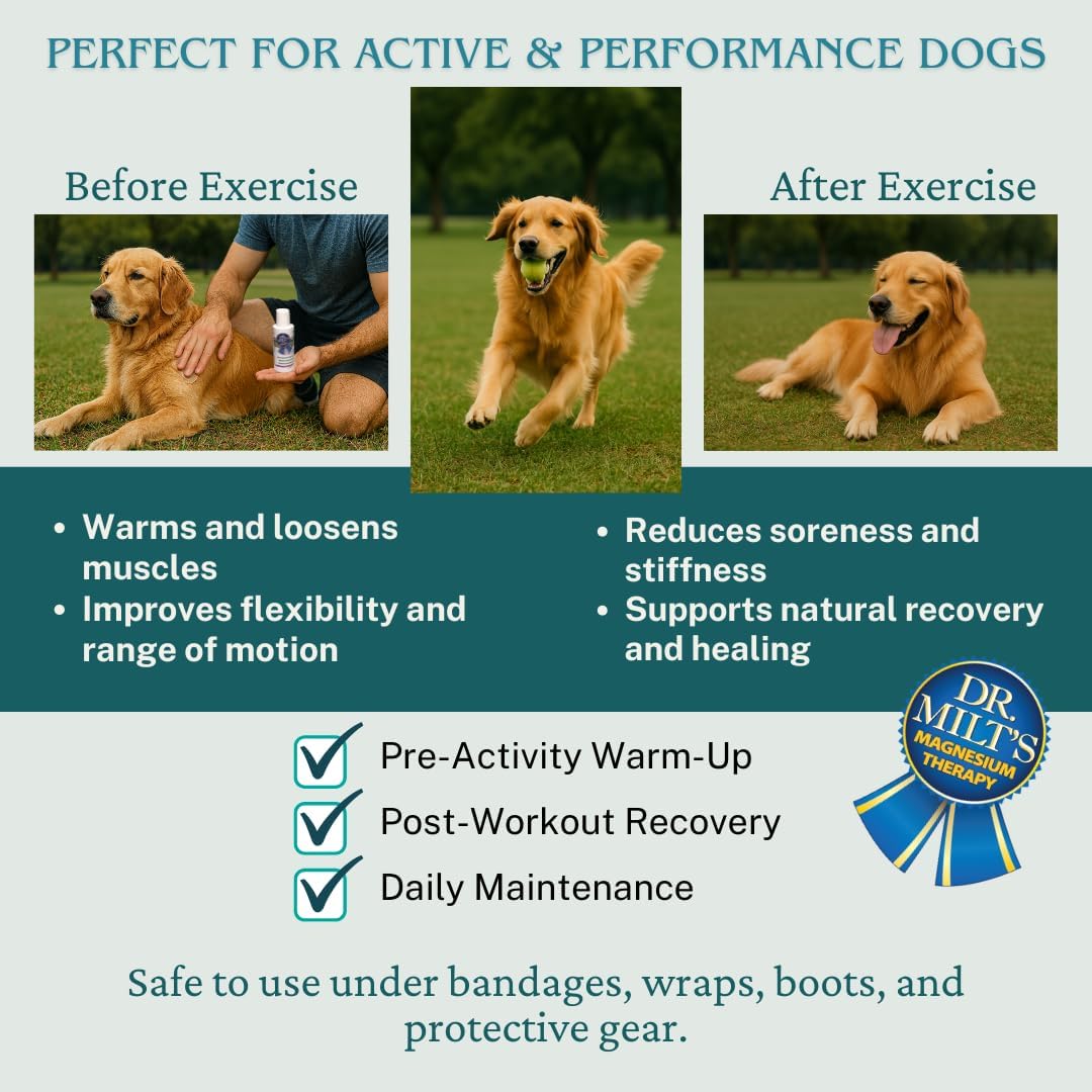 ALL-NATURAL, VETERINARIAN-FORMULATED RELIEF - Dr. Milt’s Dog Pain Away Ointment is crafted by a racehorse veterinarian using pure magnesium sulfate, witch hazel, menthol, arnica, wintergreen, and peppermint oil. Every ingredient is carefully selected to support sore joints, tired muscles, stiffness, mobility discomfort, and post-activity recovery in dogs and senior pets. No artificial fillers, no parabens — just clean, herbal support you can trust. SOOTHING, COOLING & COMFORTING - The natural peppermint + wintergreen aroma creates an instantly refreshing, spa-like coolness that pets love. Our formula is non-greasy, non-sticky, and absorbs quickly, making application easy on both you and your pet. Perfect for targeted massage on hips, knees, back, neck, elbows, and achy joints. TARGETED JOINT & MUSCLE SUPPORT - Designed to help relieve everyday discomfort from aging, long walks, active play, or breed-related joint stress. Gently massage into the affected area to help ease stiffness, promote relaxation, and support mobility. Safe for dogs and cats when used as directed. HERBAL SUPPORT FOR SENIOR PETS - Arnica and menthol provide natural warming + cooling benefits, while magnesium sulfate supports circulation and recovery. Ideal for dogs who experience chronic muscle tension, nerve discomfort, or arthritis-related soreness. NO HARSH INGREDIENTS — ONLY EFFECTIVE ONES - Unlike many artificial heat or cold products, Dr. Milt’s focuses on true comfort, not masking symptoms with extreme sensations. Every ingredient works to support the body’s natural ability to soothe inflammation and tension. PETS LOVE IT — AND SO WILL YOU - Our customers report easier mobility, better recovery after activity, and a calmer, more relaxed pet. If your dog enjoys massage time, this will quickly become their favorite part of the day. OUR PROMISE - If you have any questions or concerns about your order, reach out anytime — we’re here to help and will make sure you're taken care of. › See more product details