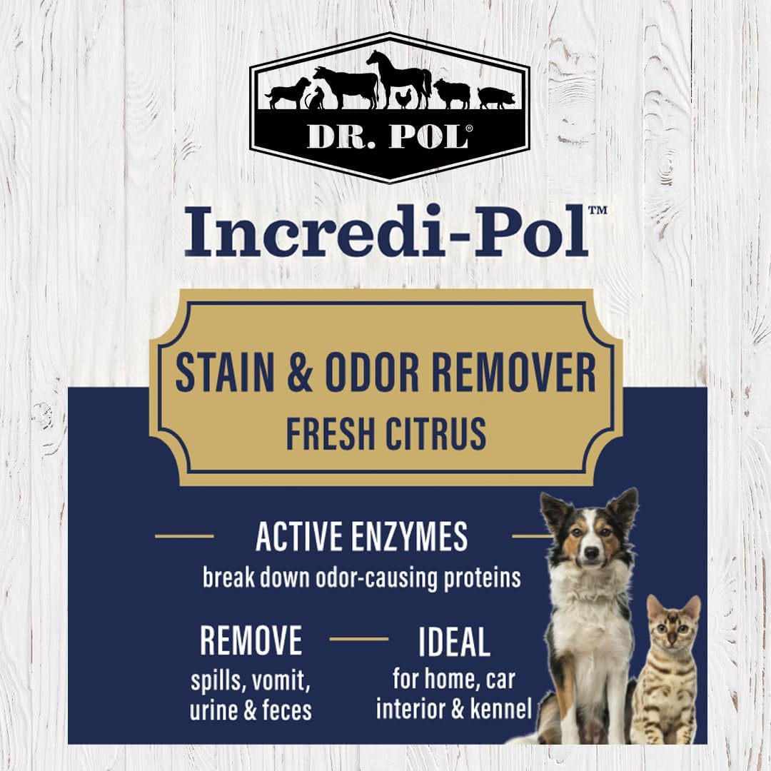 POWERFUL STAIN & ODOR REMOVAL: Dr. Pol Incredi-Pol Stain & Odor Remover is specially formulated to break down and eliminate tough stains and odors caused by dirt, urine, and feces, keeping your pet fresh and clean. SAFE-AROUND-PET FORMULA: Effective on rugs, bedding, furniture and more. Free of parabens, phosphates, phthalates, DEA, synthetic dyes & perfumes. EASY-TO-USE TRIGGER SPRAYER: The convenient trigger spray delivers an even mist for targeted cleaning and deodorizing, making it a must-have for pet owners looking for a quick and effective way to maintain their pet’s hygiene. › See more product details