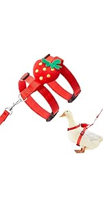 About this item Cute Strawberry Duck Traction Rope: duck harness and leash set for real ducks in three sizes, with a chest circumference range of 11.8 to 15.3 inch and a neck of 9.8 to 15.75 inch in size M; The thickness of the coil is 0.34 inch, and the thickness of the traction rope is 0.59; We have a detailed size chart to choose from according to the size of your pet, the strawberry pattern is cute and eye-catching, adding a cute feeling to your little animal Durable Material: adjustable duck harness rope is made of sturdy nylon material, this fabric is durable, breathable, and reinforced, training traction rope can withstand daily wear and tear, say goodbye to loose seams and broken stitches, and is easy to clean; Pet vest harness and leash is lightweight, easy to carry, and combines durability and comfort; It is skin friendly for pets, easy to wear and take off, bringing many conveniences to pet owners and suitable for your pet's use Adjustable Size and Cute Design: our duck harness is designed with adjustable features, allowing for maximum size adjustment according to your needs; You don't have to worry about them getting loose while strolling on the street, the cute strawberry design on the back makes your beloved pet the center of attention, the bright red color can attract people's attention and avoid accidental harm to your pet Simple Operation: the pet strap and traction rope is simple and convenient to operation, place the front foot of the pet duck in the strap, lift the strap and fasten the buckle, and then adjust the belt to adapt, the buckle can adjust the tightness; Just simple adjustment can ensure that your duck or chicken can get a comfortable fitting experience and move freely to the greatest extent Widely Application and Exquisite Gifts: adjustable duck harness leash is not only suitable for ducks, but also for other small pets such as chickens, rabbits, cats, dogs, etc; This pet strawberry leash is a suitable gift for pets, kittens, and other small animals; Suitable for daily walks, jogging, training, and other outdoor recreational activities › See more product details