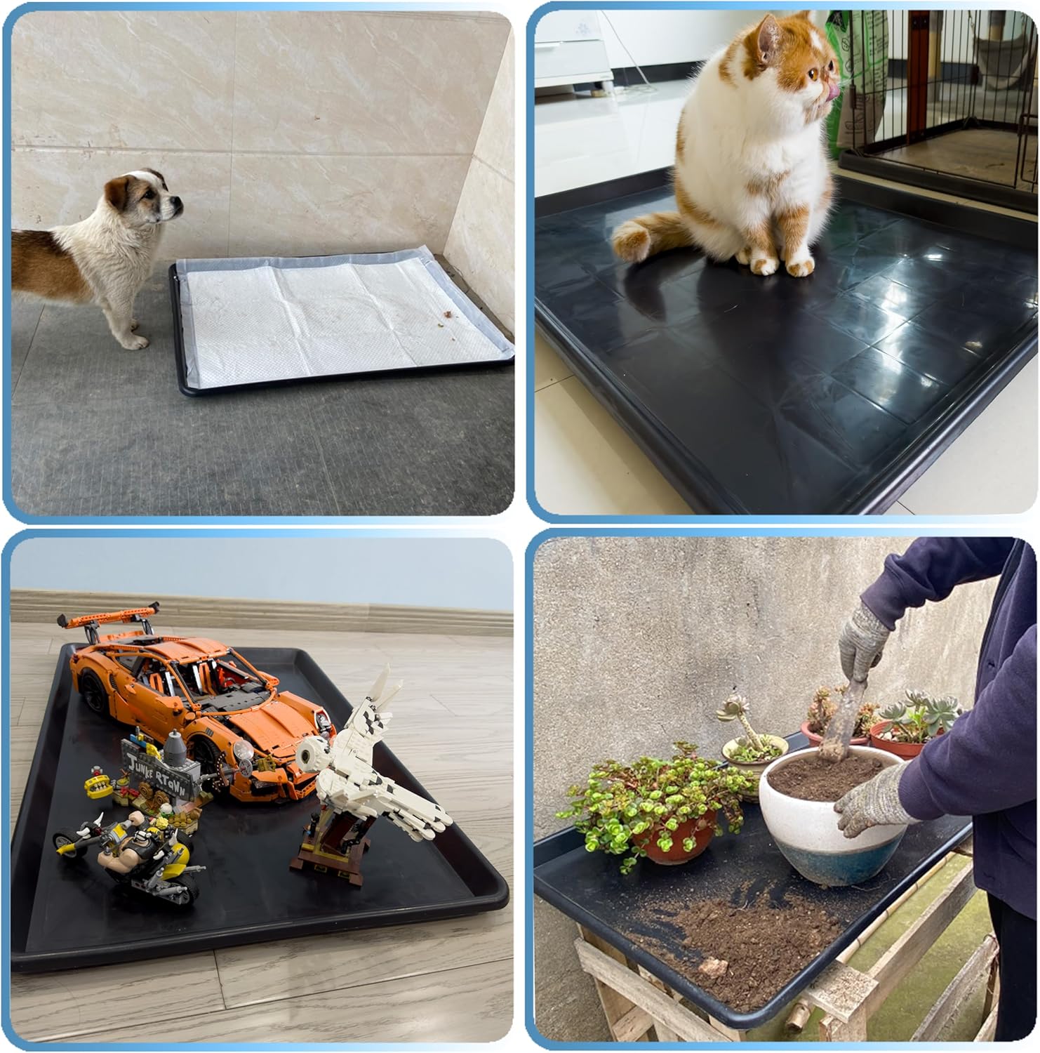 About this item Check the Size: each dog crate tray replacement size is about 40.9"L x 27.40"W x 1.0"H to fit 42" Crate, please make sure the replacement tray size matches your dog cage before ordering Bite-Resistant Construction: our replacement pan for dog crate is designed with a special reinforced plastic that offers enhanced resistance against chewing and biting. replacement tray for dog crate provides added durability, ensuring that plastic tray for dog crate can withstand the energetic behavior of pets without getting damaged easily. Easy to Clean: The dog crate tray replacement is incredibly easy to clean, making your maintenance tasks simpler and more convenient. Its smooth surface allows for effortless cleaning of the dog crate or birdcage, requiring just a quick wipe with water and soap. For cat litter trays, its design makes scooping and cleaning the litter a breeze, ensuring a clean and hygienic environment for your cats. Essential for Potty Training: Our dog kennel trays replacement is a must-have for potty training dogs, especially in apartment settings. It provides a designated area for dogs to relieve themselves, making the training process more efficient and convenient. By using our dog crate trays replacement, you can effectively teach their dogs appropriate bathroom habits and maintain cleanliness in their living spaces. Versatile and Multi-Purpose: Our dog crate replacement tray is designed to be a versatile solution that can be used in various scenarios. dog crate pan serves as an excellent replacement tray for cage, cat litter boxes, and bird cages. dog crate plastic tray replacement adaptability and compatibility make it a convenient choice for pet owners looking for a reliable and practical solution. › See more product details