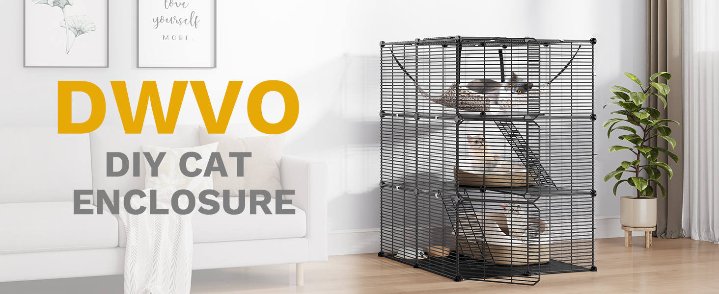 About this item Cat Cage Accessories: Features smooth yet sturdy platforms that protect your cat's delicate paws, with secure hook-top stairs that firmly attach to the iron frame for added play areas. Enhanced stability is ensured with included cable ties and white connectors, creating a safe environment for your pet Customizable Cat Enclosure: Our DIY cat playpen comes with abundant panels for flexible assembly, allowing you to create the indoor cat cage setup for your space. Easily adjust the configuration to fit any room size or layout, providing a secure haven for your kitten or cat Multi-Functional Pet Space: This versatile cat cage serves as both a playpen and resting area, ideal for indoor use in bedrooms, living rooms, or even travel RVs. The spacious design comfortably accommodates 1-2 cats, ferrets, rabbits, or other small animals Easy-Clean Floor System: Includes detachable black floor mats that maintain a clean and dry environment inside the cat enclosure. The sturdy base prevents slipping while making cleanup effortless for chinchillas, guinea pigs, and other small pets Quick Assembly Design: Setup your cat kennel in minutes with our user-friendly design. Just 1-2 people can have this pet cage ready in under 30 minutes, providing an instant play area for your feline friend or other small animal companions › See more product details