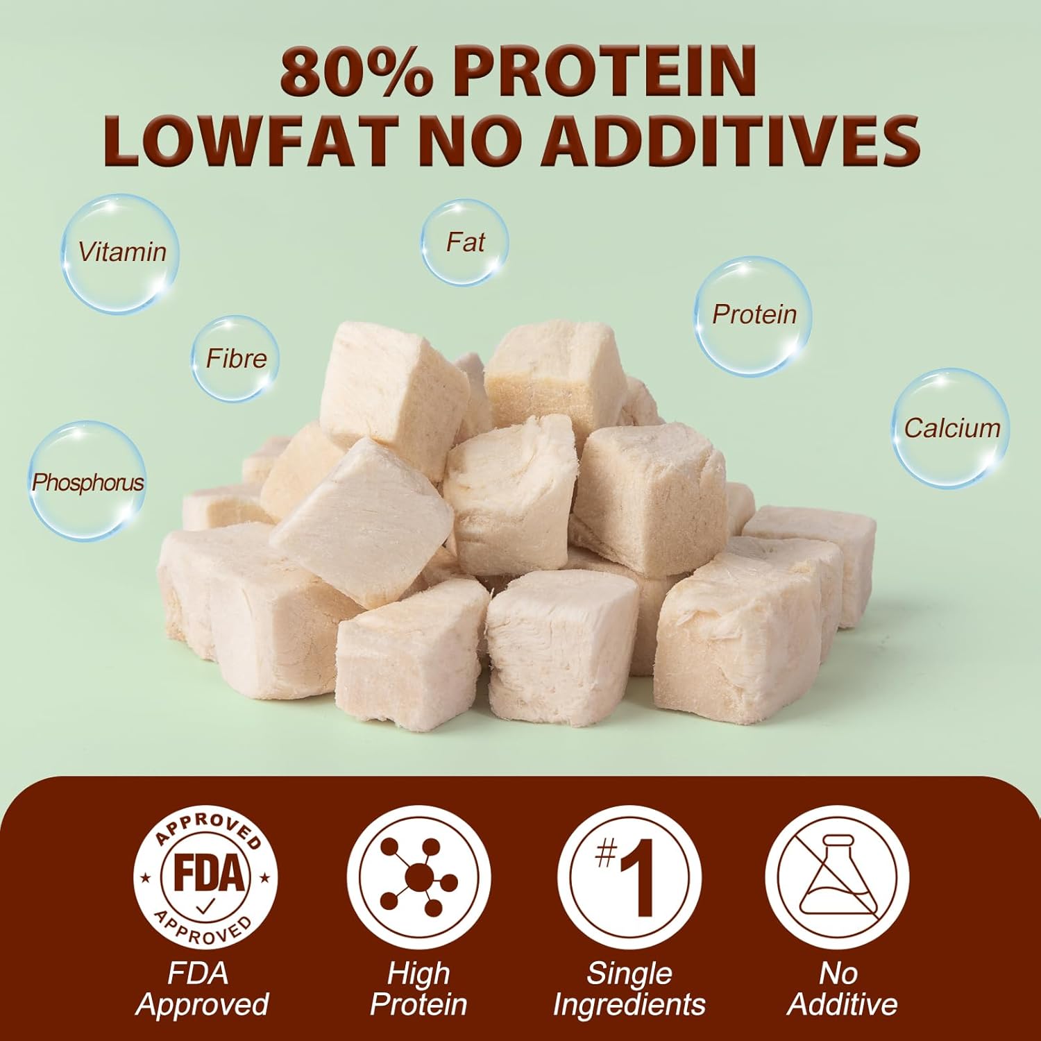 About this item High Protein Treats : Our freeze dried chicken treats provide a concentrated source of protein, essential for your pet's muscle health and energy levels, making them perfect for training or as a snack. Single Ingredient Goodness : Made with 100% pure freeze dried chicken breast, these treats are free from additives and fillers, ensuring your pets get only the best – a natural and healthy option they’ll love. Grain-Free & Gluten-Free : Suitable for pets with dietary restrictions, our freeze dried chicken dog treats and cat treats contain no grains or gluten, making them a safe choice for sensitive stomachs. Irresistible Flavor : Cats and dogs alike can’t resist the delectable taste of our freeze dried chicken! Use them as training incentives, rewards, or simply as a delicious treat during playtime. Versatile Use : Perfect for dogs and cats of all sizes, these freeze dried treats are easy to break apart for smaller pets or training sessions, making them an excellent addition to your pet's treat collection. › See more product details