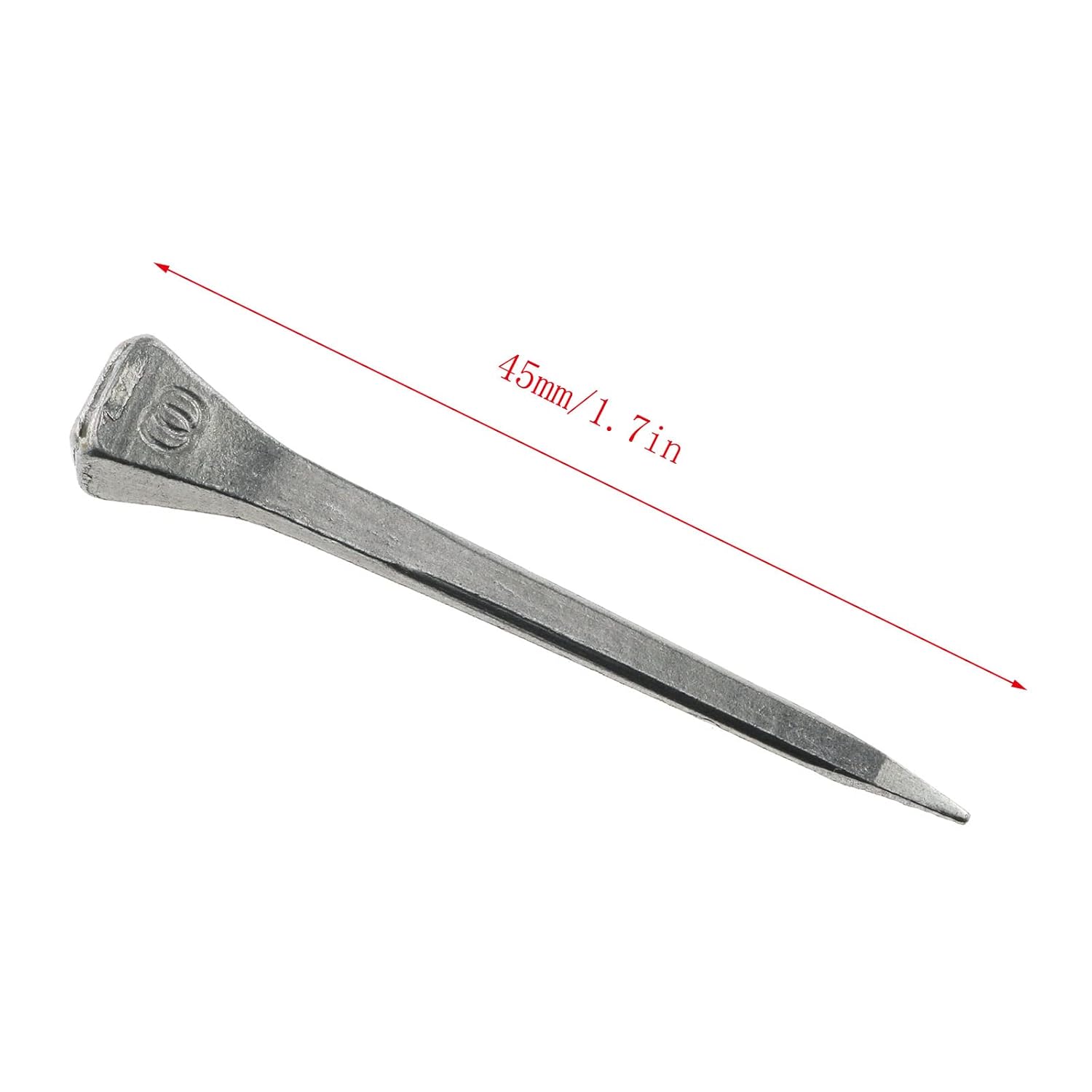Size: 1.2 inches/E3 Specification: Type: Horseshoe nails Length: 1.7inch Material: low carbon steel Surface treatment: polishing, surface Package includes: 50 x horseshoe nails