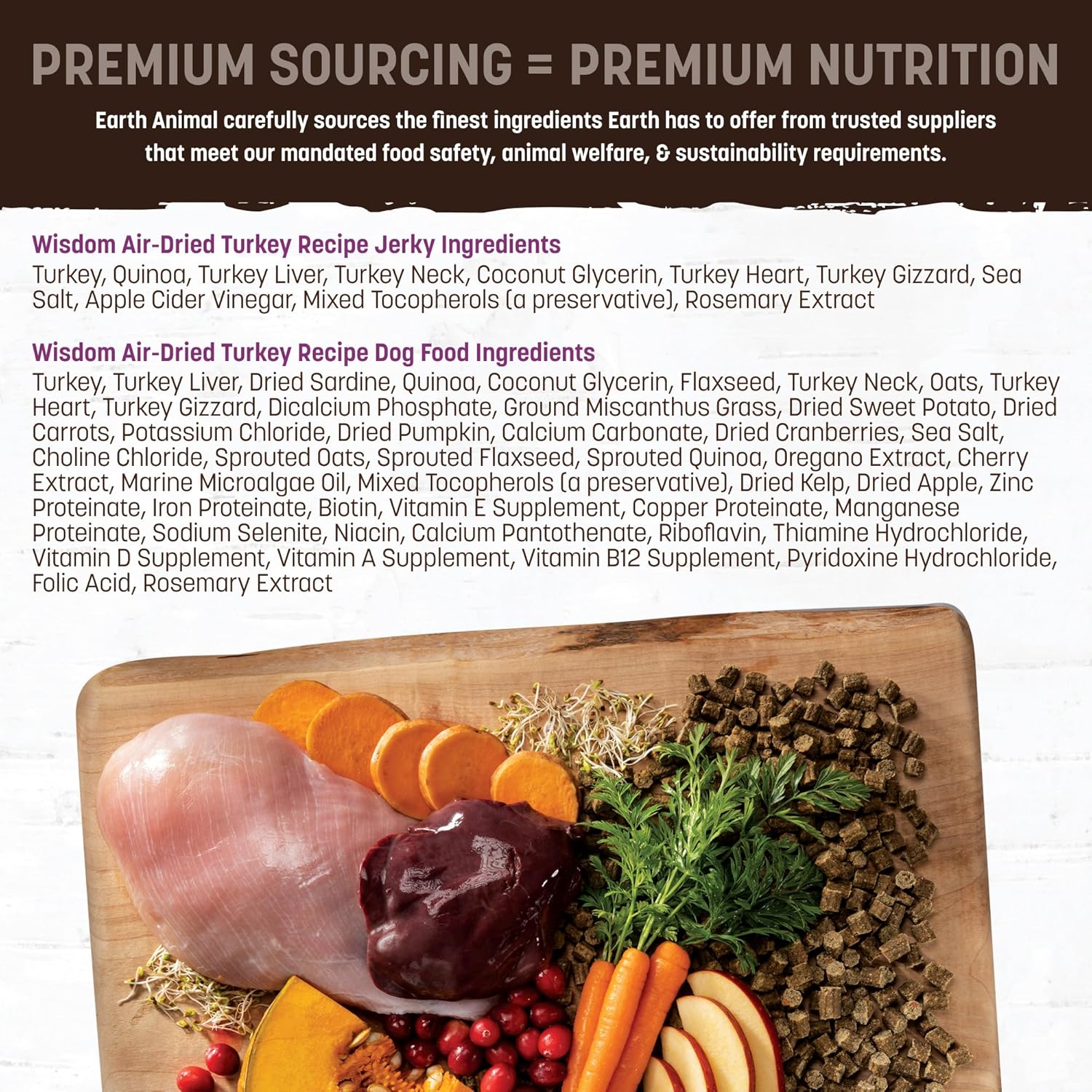 Since 1979, Earth Animal has been dedicated to helping pets live long, healthy lives by creating high-quality, wholesome foods, treats, herbal remedies, and supplements. As a holistic veterinary family, we share your goals of wellness and longevity for animals. At our SQF-certified manufacturing facility, Riverstone, nestled in the farmlands of Maryland, we craft Wisdom products in small batches—meticulously overseeing every ingredient from start to finish. Whether it’s our nutrient-rich Wisdom Air-Dried Dog Food or our aromatic Wisdom Air-Dried Jerky, each recipe is made with the same care and commitment to quality. Our Air-Dried Dog Food combines premium ingredients like organ and muscle meat, ancient grains, fruits, vegetables, and essential vitamins—gently air-dried to preserve nutrients and intense flavor. Meanwhile, our Air-Dried Jerky offers the same thoughtful sourcing and craftsmanship in every delicious bite. You can trust that every choice we make upholds our mission to enhance the quality of life for all Earth’s animals. We are transparent about our compassionate sourcing, ingredient selection, and sustainable practices—including our 100% recyclable packaging, a first in the pet industry. Earth Animal dedicates 1% of annual net sales to initiatives that protect and improve life for animals, people, and the planet. Because when it comes to wellness, we believe in doing better—for pets and the world they live in.