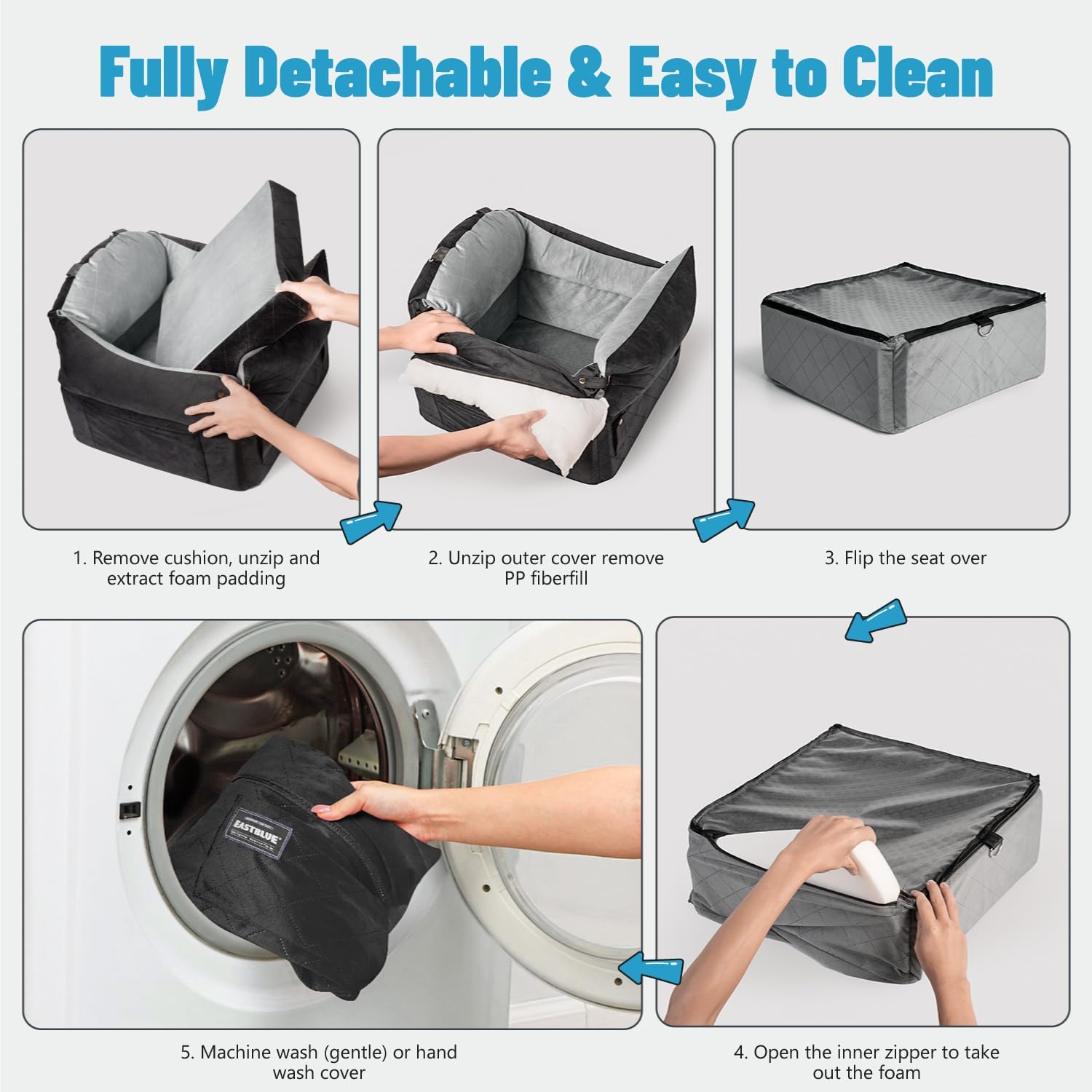 - Directions: Crafted with soft and premium material, supportive PP cotton bolsters and dual memory foam cushions, this dog car seat offers adjustable height for a better view, two secure installation methods for stability, and a fully removable cover for easy machine washing. Ideal for home use, travel, camping, and outdoor adventures, it keeps your pet comfortable, safe and relaxed in any setting.
