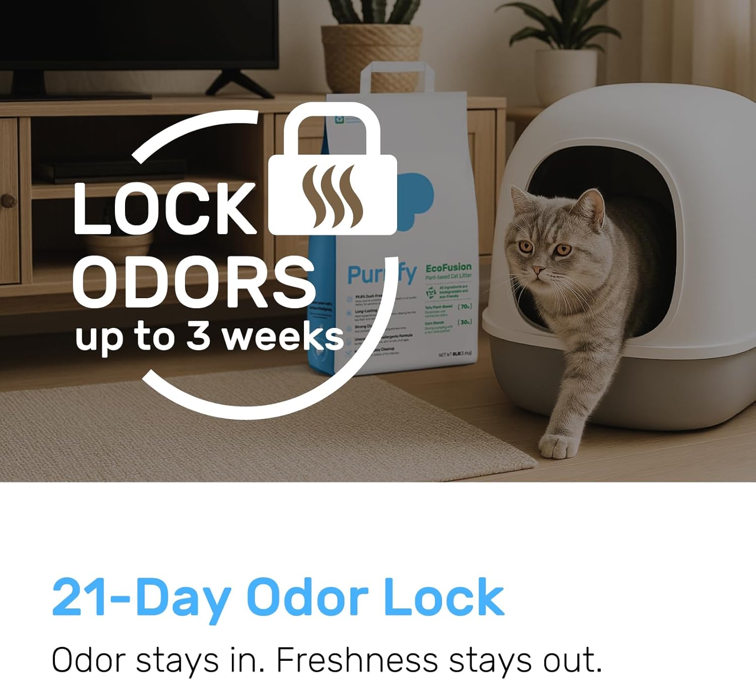 About this item Next-Generation Plant-Based Cat Litter A breakthrough blend of 70% tofu fiber and 30% plant starch. Free from heavy metals, formaldehyde, and aflatoxins—safe for kittens, seniors, and sensitive cats. Designed for today’s eco-conscious cat parents. 99.8% Dust-Free, 98% Odor Control, Fast Clumping Enjoy a cleaner litter experience—ultra-low dust to protect lungs and surfaces, odor control that lasts up to 21 days, and fast clumping for easier daily cleanup. Zero Powdering, Zero Mess Unlike bentonite or mixed litters that crumble and produce dust, EcoFusion remains stable and smooth. No powder, no haze, no tracking—just cleaner air and cleaner floors. Non-Stick Cleanup, Powered by Plant Starch 30% plant starch strengthens clump formation and prevents sticky residue. No more scraping—just clean, complete scoops every time. Absorbs 4x Its Weight in Moisture, Lasts Up to 30 Days Each 8lb bag absorbs up to 4 times its own weight in moisture, providing long-lasting use for one cat with fewer refills and less waste. Eco Packaging + Bonus Scratcher (3-Pack Only) Our 3-pack includes recyclable paper bags and a reusable cat scratcher. Eco-friendly, fun, and designed for a lower-waste lifestyle—so even your cat can join the journey to a greener planet. Simple to Use Fill box with 2–3 inches (5–8cm) of litter, scoop daily, top up as needed, and replace monthly for optimal performance. › See more product details