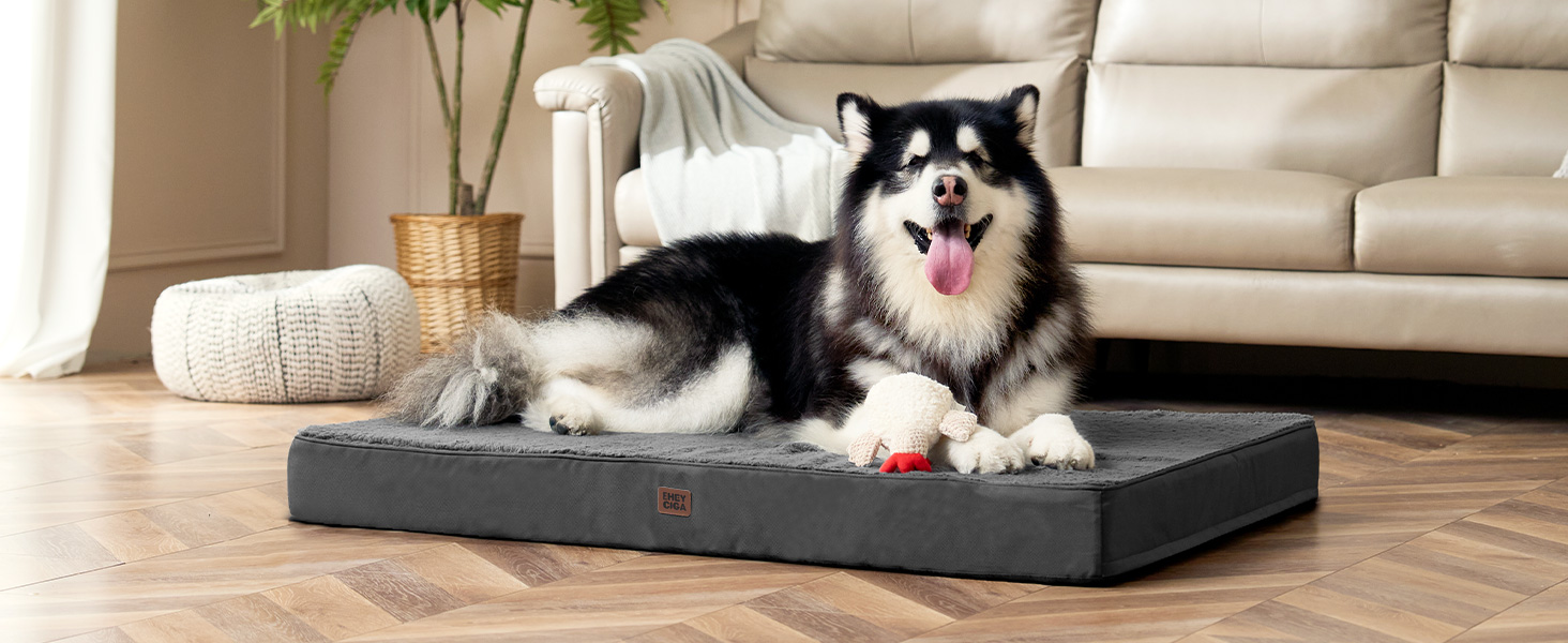 About this item All SIZE SUPPLIED: EHEYCIGA dog beds for medium, large and extra large dogs have many sizes which can fit all kinds of scenes including using in dog kennels and crates, and placing directly on the floor to bring you convenience to choose the best suitable dog bed for large dogs. SUPPORTIVE EGG-CRATE FOAM: Our orthopedic dog bed large constructed with 3.5 inches high density egg foam and will provide great support and comfort for dogs and cats. SUPPORTIVE FOAM CHOSEN: Our foam dog mat constructed with 3.5-inch high density finest quality foam slab give your pal a perfectly comfy place. ULTIMATE SLEEP SURFACE: Plush sherpa top and non-skid bottom of EHEYCIGA flat dog mattress bed creates ultimate softness and coziness for your pets without moving everywhere. CARE INSTRUCTIONS: Zippered removable cover is machine washable. Tumble dry on low heat. DO NOT BLEACH. DO NOT IRON. Please note that the inner foam is not washable. After receiving it, leave it for 24-48h for rebound. › See more product details