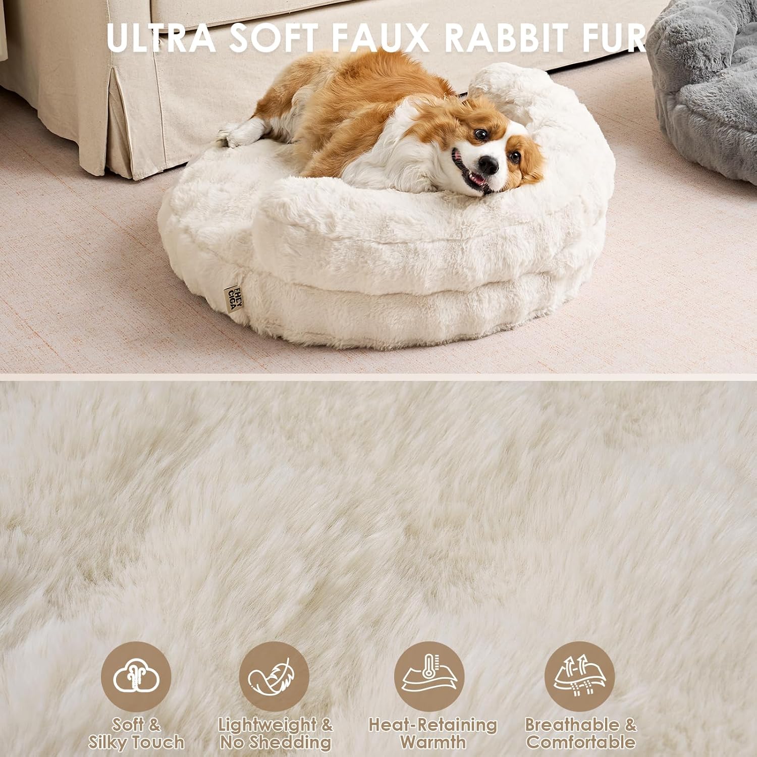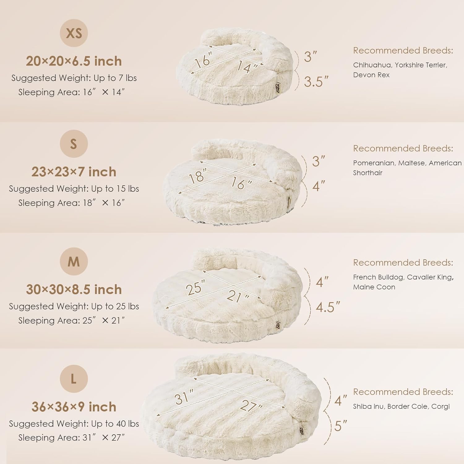 About this item CLOUD-LIKE SUPPORT & BALANCED COMFORT: This pet bed blends chopped foam and polyester fiber for balanced softness and support. Ideal as a cat bed or small dog bed, it cushions the body for cozy naps and long-lasting comfort. LUXURIOUS FAUX RABBIT FUR TEXTURE: Ultra-soft bubble-textured faux rabbit fur wraps pets in warmth. Stylish enough to serve as cat furniture or a compact dog couch, it enhances any room while keeping your pet comfortable. WATERPROOF PROTECTION & EASY CARE: Built-in TPU waterproof lining guards against spills and accidents. The zippered cover is removable and machine washable for quick, hygienic cleaning—perfect for washable small dog beds and indoor cat beds. NON-SLIP STABLE DESIGN: Dotted anti-slip base keeps the bed steady on smooth floors. This round dog bed provides secure footing so pets can jump in and out without the bed sliding, ensuring safe, worry-free rest. QUICK FLUFF & FAST SHAPE RECOVERY: Vacuum-packed for efficient shipping. After opening, pat and shake, then allow 48 hours to fully expand. For faster recovery, tumble dry on low or air in sunlight to restore plush loft quickly. › See more product details