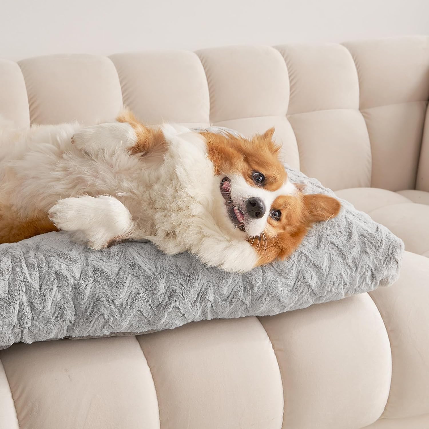 About this item Reversible Design for Year-Round Comfort: Features 3D soft faux fur (winter & autumn) and breathable linen-like fabric (spring & summer), with distinct textures for year-round use. The winter-autumn side is ultra-soft, comfortable, non-shedding—soothing dogs, easing anxiety, improving sleep. The spring-summer side is cool, breathable, non-lint-sticking, solving faux fur's stuffiness. Luxurious Filling Support: Filled with high-grade polyester, secured by 4 locking holes, it offers strong elastic support and long-lasting resilience. Fits dogs' neck, shoulder, waist & hip curves, supporting bones, reducing pressure, relieving joint pain, soreness and arthritis. Multiple Sizes & Versatile Uses: Offers 5 crate-compatible sizes (S to XXL-Crate), weight capacities 25 lbs to 110 lbs, suitable for all dog breeds. Perfect for use with kennels, crates, or as a standalone bed, this portable pet mattress adapts to both indoor and outdoor settings. Machine-Washable: The dog bed mat is hand/machine washable for easy care. Machine wash cold, tumble dry low; front-loading washers recommended (top-loading may damage). XL needs washer capacity >3.5 cu ft, XXL >4.5 cu ft. Attention: Comes in vacuum-compressed packaging. Before dogs use it, pat the mat or let it sit 24-48 hours to restore fluffiness. › See more product details
