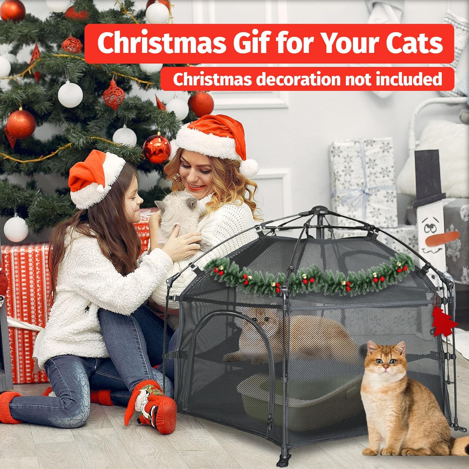 About this item 【Cozy 3-Tier, Hexagonal Design】Features a spacious 3-level design with 2 removable hammocks (1/2 floor area each), offering cats a comfortable and roomy space to relax. The different tiers encourage natural climbing behavior, adding fun and exercise. Cats can rest, play, or sleep safely inside the enclosure. Measures 42.6" x 27.6"H. 【Assembly-Free, On-The-Go Catio】 No tools needed! This pop-up catio cat enclosure set up and take down in seconds—ideal for travel, camping, or quick indoor use. Durable yet portable, it creates a snug spot anywhere. Packing down into its included carrying case (25.6" x 10.7" x 7"), this lightweight (4 lbs) playpen is effortlessly portable. 【Reinforced & Durable Construction】Crafted with heavy-duty tear-resistant mesh for breathability and visibility, supported by robust steel frame with reinforced seams for stability. 600D PVC-coated Oxford fabric floor is scratch-resistant and water-proof, easy to clean and carpet-safe. The stable structure and secure zipper closure provide safety. 【Indoor & Outdoor Use】Perfect for both kittens and cats, whether placed in the backyard, on a balcony, deck, or brought along for camping. It can also serve as an indoor playpen, a cozy crate alternative, or a quiet napping spot. Wherever you need secure and spacious pet containment—at home or on the go—this versatile tent offers an ideal solution. 【Breathable Mesh Windows for Maximum Airflow】: Cat playpen equipped with breathable mesh that provide excellent ventilation, keeping your pet cool and comfortable while offering visibility for both you and your pet. Imagine your cat enjoying the view, watching birds outside from a breezy, relaxing spot! › See more product details