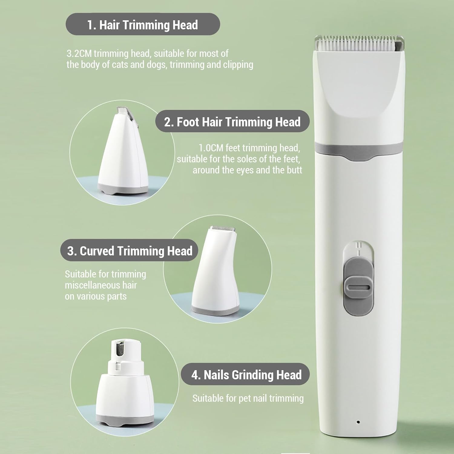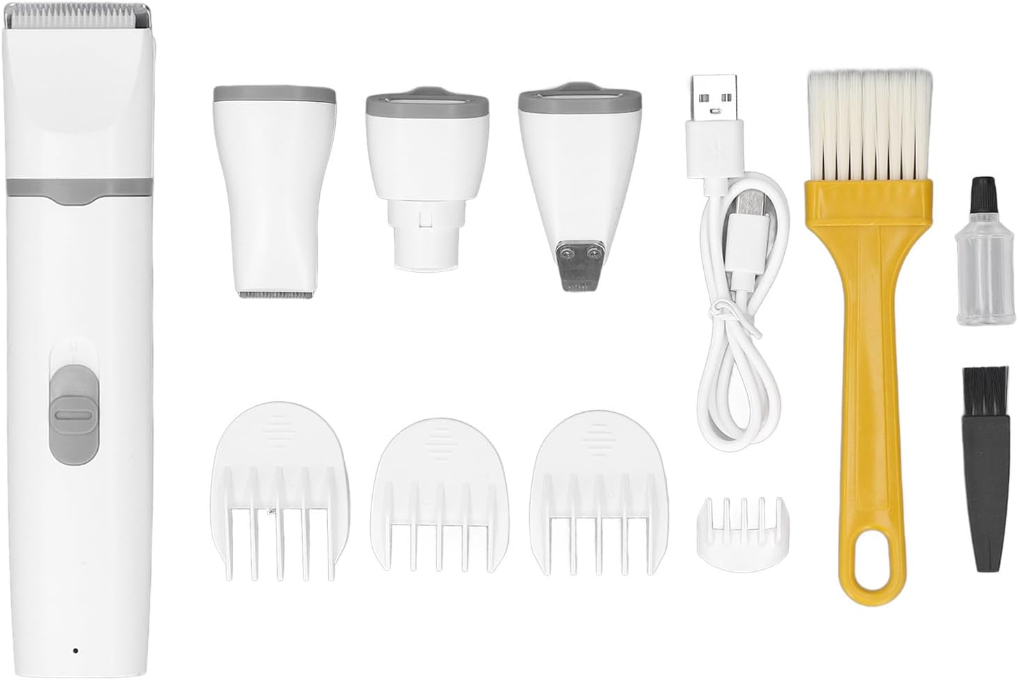 Item Type: Pet Hair TrimmerModel: T65Material: ABSBattery: 1 x Lithium Ion Battery 800mAh (Built in)Charging Voltage: DC 5VPackage List:1 x Pet Trimmer3 x Trimming Heads4 x Head Guards2 x Cleaning Brush1 x Lubricat Oil1 x Charging Cable1 x User Manual