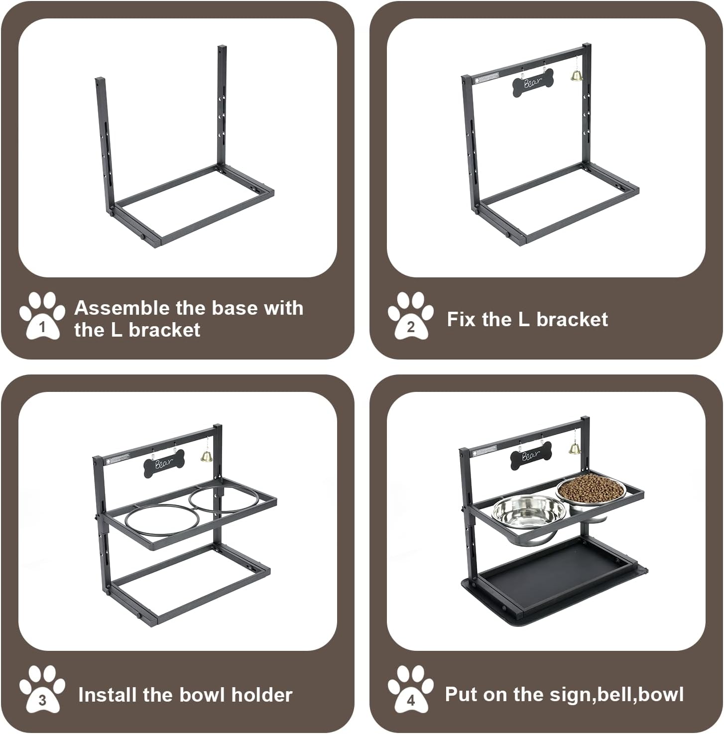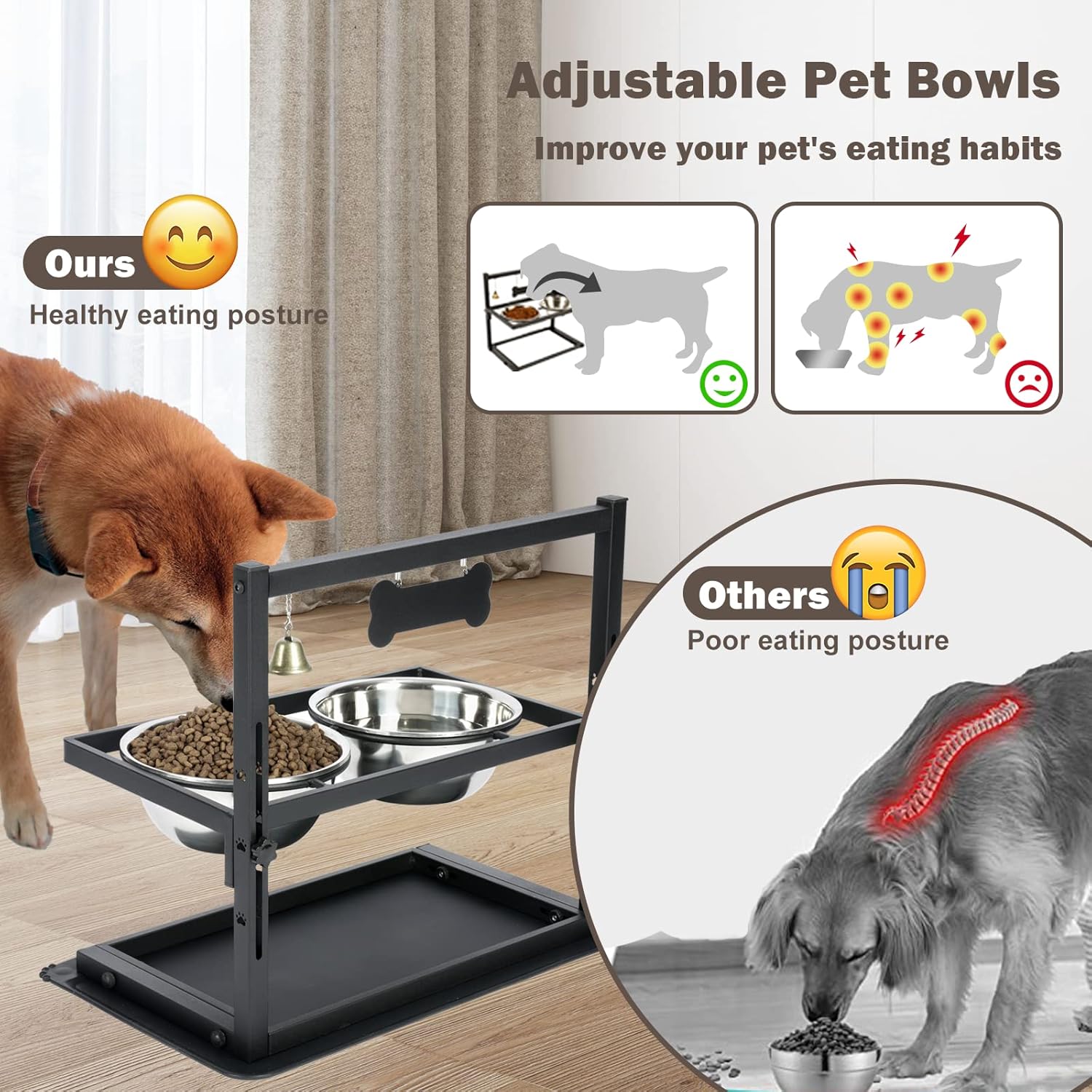 About this item REDUCES NECK AND JOINT STRESS: SHAINFUN elevated dog bowls provides your pet with a healthier eating position and relieves stress on your dog's neck and joints while eating, which will effectively protect joints, perfect for large dogs and dogs with limited mobility. In addition, we offer a slow food bowl which will train your dog to eat at a slower pace.Perfect for fast eater PET INTERACTION: Special bells can be used to call your pet to eat. This dog bowl holder kit comes with a free white pen that you can use to write on the sign. Spilled water and food will land nicely on the mat STURDY ALL IRON: The dog bowl stand is made of industrial grade iron which is more durable compared to plastic bowl stands. The Dog Bowl Holder has a bottom that adjusts backward to prevent your dog from tipping over while eating Slow Food Concept: The slow food concept is widely respected by experts. Slow food bowls can help you achieve this goal. When your dog eats, the raised portion of the bowl separates the food and your dog will search for the food in the bowl, thus slowing down the rate at which he eats and helping your dog develop better eating habits CUSTOMER SERVICE: This elevated dog bowl is the latest design. We provide the best customer service to improve the product. If you have any comments and suggestions, you can contact us via email and we will give you a satisfactory answer within 12 hours › See more product details