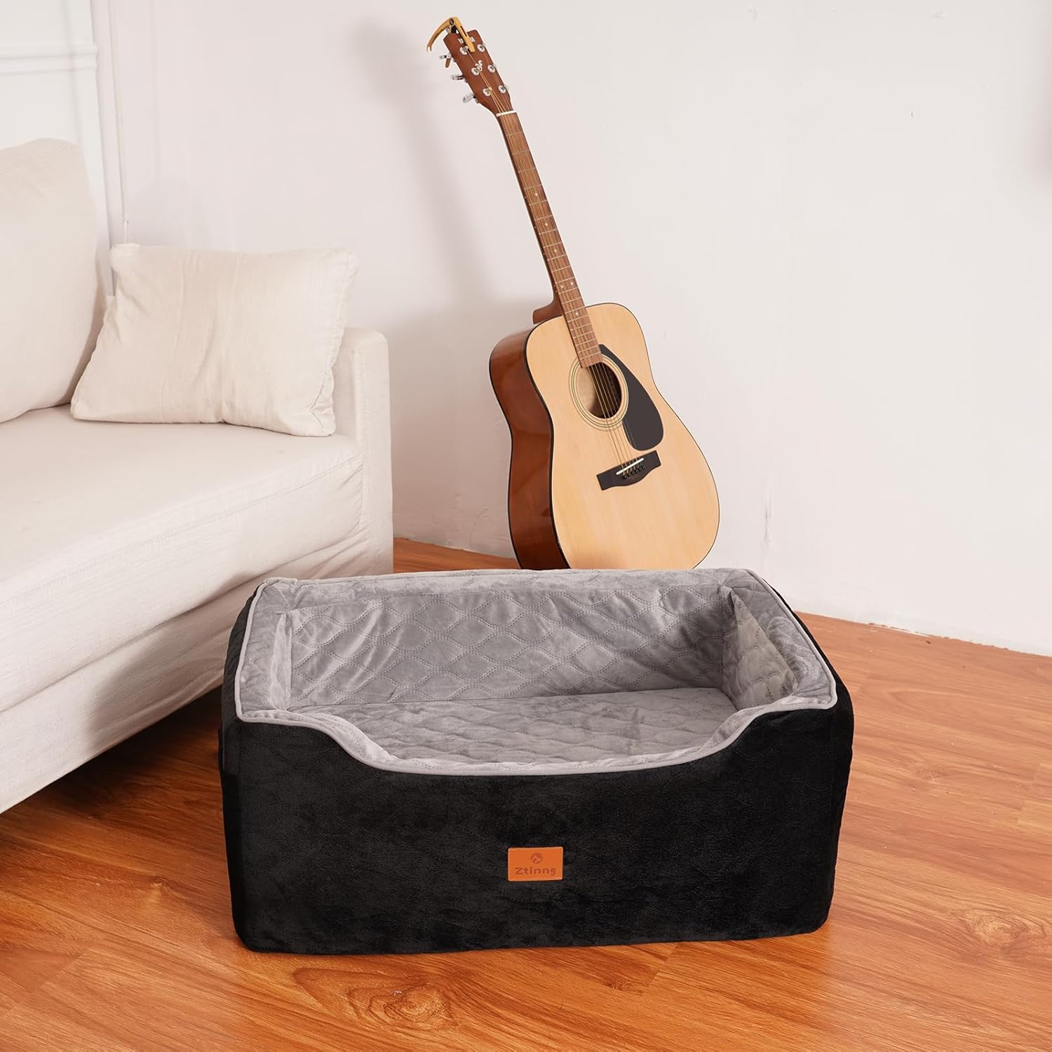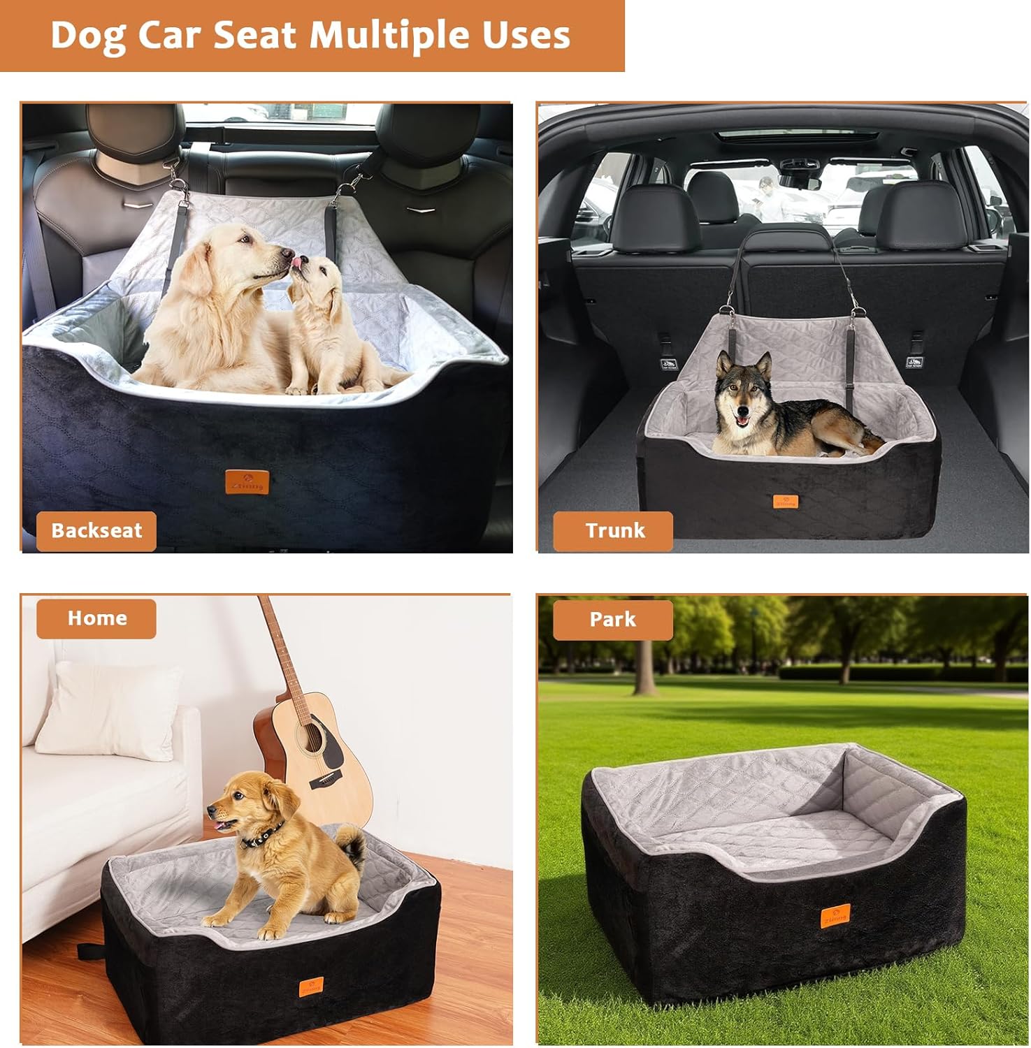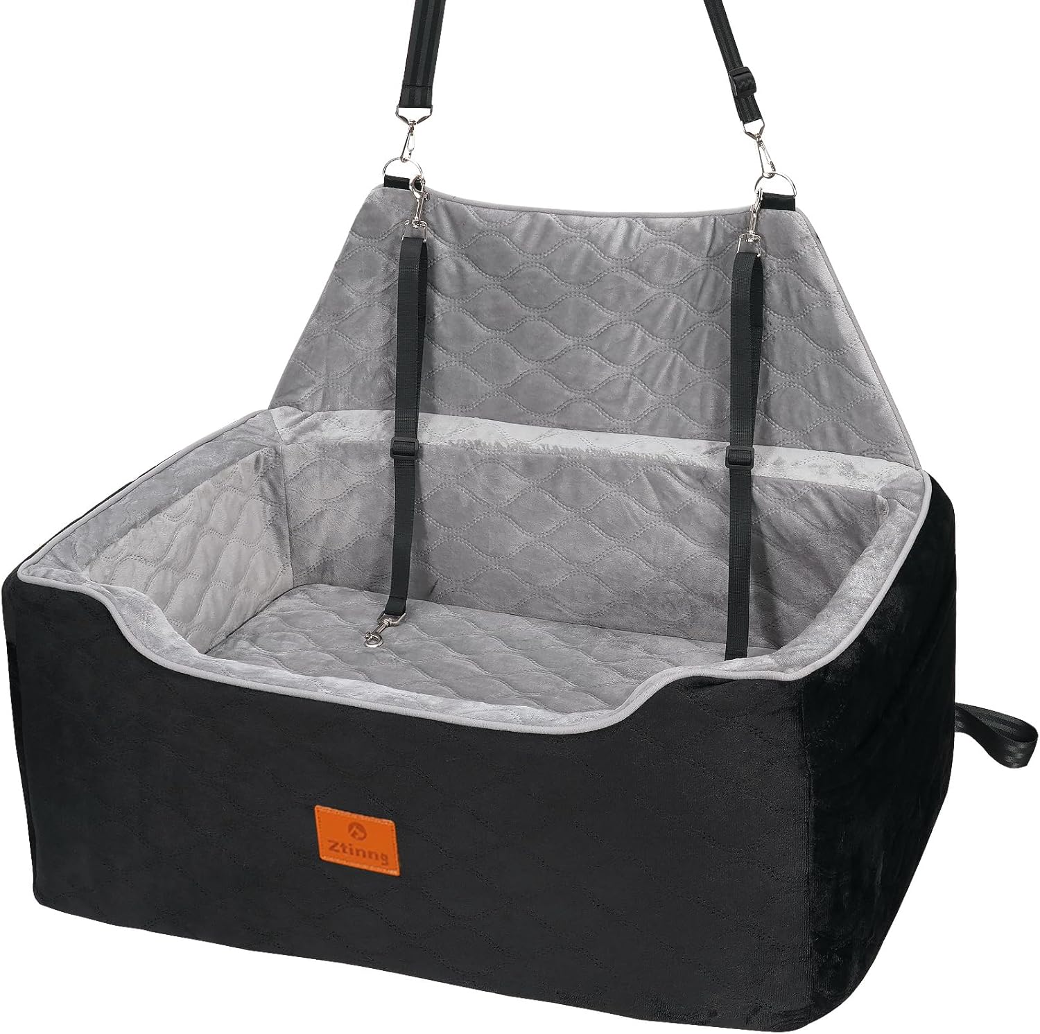 About this item 【Size】: This dog car seat measures 29.5"(L) x 19.7"(W) x 11.8"(H), 【Multiple Uses Dog Car Seat】: providing ample space for medium or small dog up to 60 pounds. This dog car seat is suitable for almost all types of vehicles, such as cars, trucks, and SUV, and you can easily install them in the back seat.Can usually be used at home/outdoor/camping too. 【Premium Material for Ultimate Comfort】: Crafted from high-quality crystal velvet fabric and high-elastic sponge, our dog car seat offers a plush and cozy environment for your pets. The soft, breathable fabric ensures comfort during long journeys, while the durable sponge maintains its shape and provides excellent support. 【Secure and Stable Design】: Our dog car bed features a built-in pet leash and uses both bottom and top seat fixings to keep the seat stable and your pet secure. This design prevents the seat from shifting, ensuring a safe and comfortable journey for your furry friend. 【Enhanced Visibility and Reduced Anxiety】: The thick, elevated cushion design allows your pets to enjoy a better view out the window, helping to reduce travel anxiety and motion sickness. Your furry friends will feel more secure and entertained, making car rides more pleasant for both you and your pets. 【Compressed packaging】: This pet car seat is packaged in vacuum compression, which may be a little wrinkled when first opened. After a day or two, it can be restored to the best condition. › See more product details