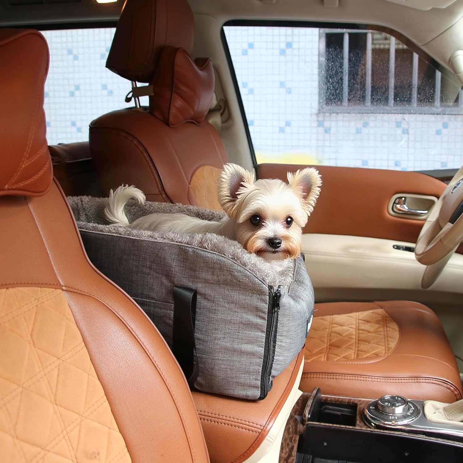 About this item Elevated Anti-Slip Platform with Security Leash: This car seat creates a stable, raised zone that keeps your pet securely above the car seat crevices. The heavy-duty anti-slip bottom grips firmly to leather or fabric seats, while the included safety tether connects to your dog’s harness (harness not included), preventing jumps or falls during sudden stops for ultimate travel safety. Waterproof & Fully Machine Washable for Hassle-Free Cleaning: The entire plush cushion features a waterproof liner that blocks accidents, drool, or spills from reaching your car’s upholstery. Simply unzip and remove the entire cover to toss it in the washing machine, making cleanup from dirt, mud, or pet hair quick and effortless. 3-in-1 Convertible Design: Car Seat, Travel Bag & Indoor Bed: Beyond car rides, it instantly converts into a convenient travel carrier bag with handles for vet visits or trips. At home, it serves as a cozy standalone dog bed, giving your pet a familiar and comfortable place to rest anywhere. Comfortable, Bolstered Design Reduces Travel Anxiety: The soft, sherpa-lined cushion and raised edges create a snug “nesting” feel that helps soothe anxious pets. This secure and comfortable space can minimize whining and carsickness, helping your dog relax and enjoy the journey. Universal Fit for Most SUV/Sedan Back Seats & Sturdy Construction: Designed to securely fit standard car back seats. The durable, chew-resistant Oxford fabric and sturdy platform are built to last through daily use. Please check the dimensions (provide in description) to ensure the perfect fit for your pet and vehicle. › See more product details