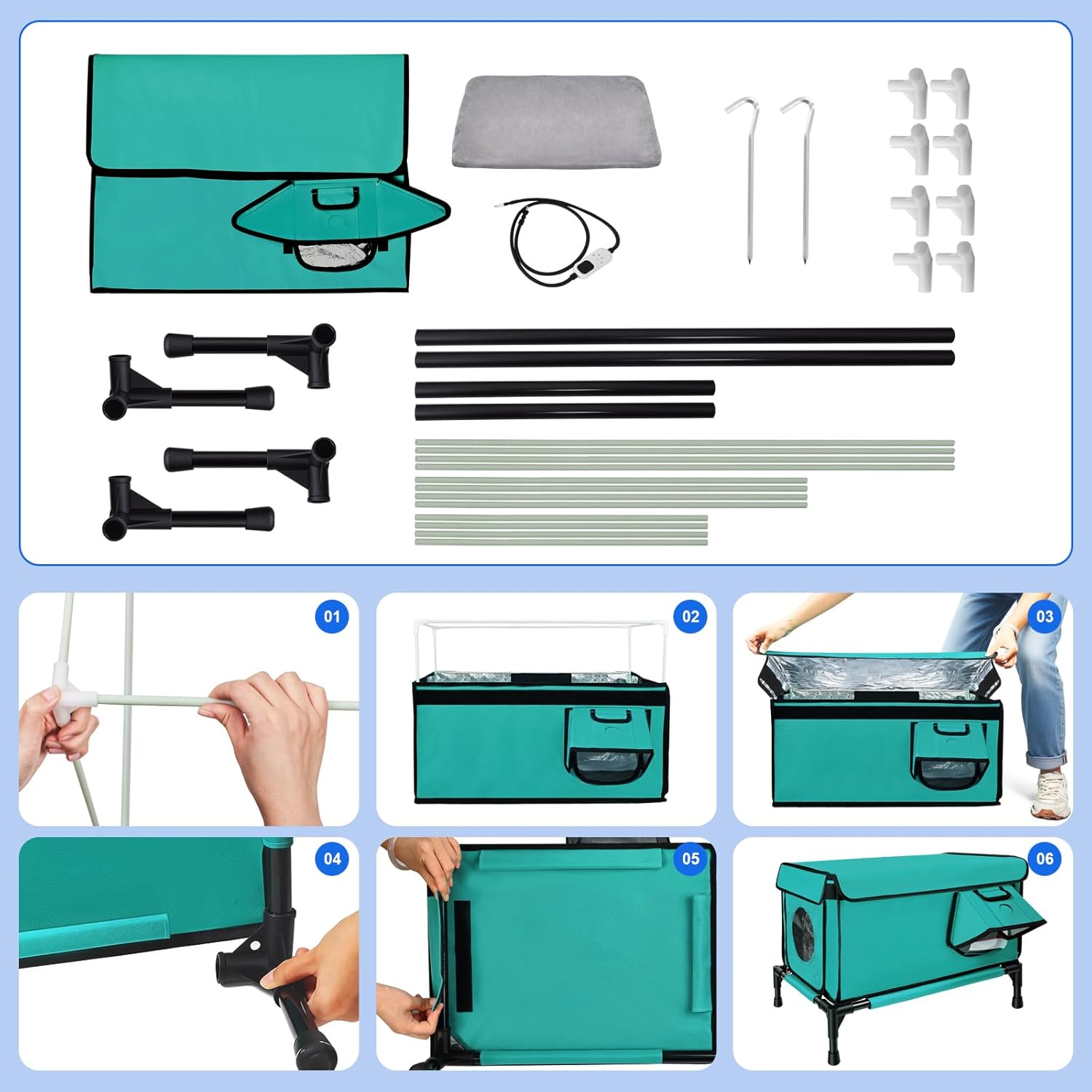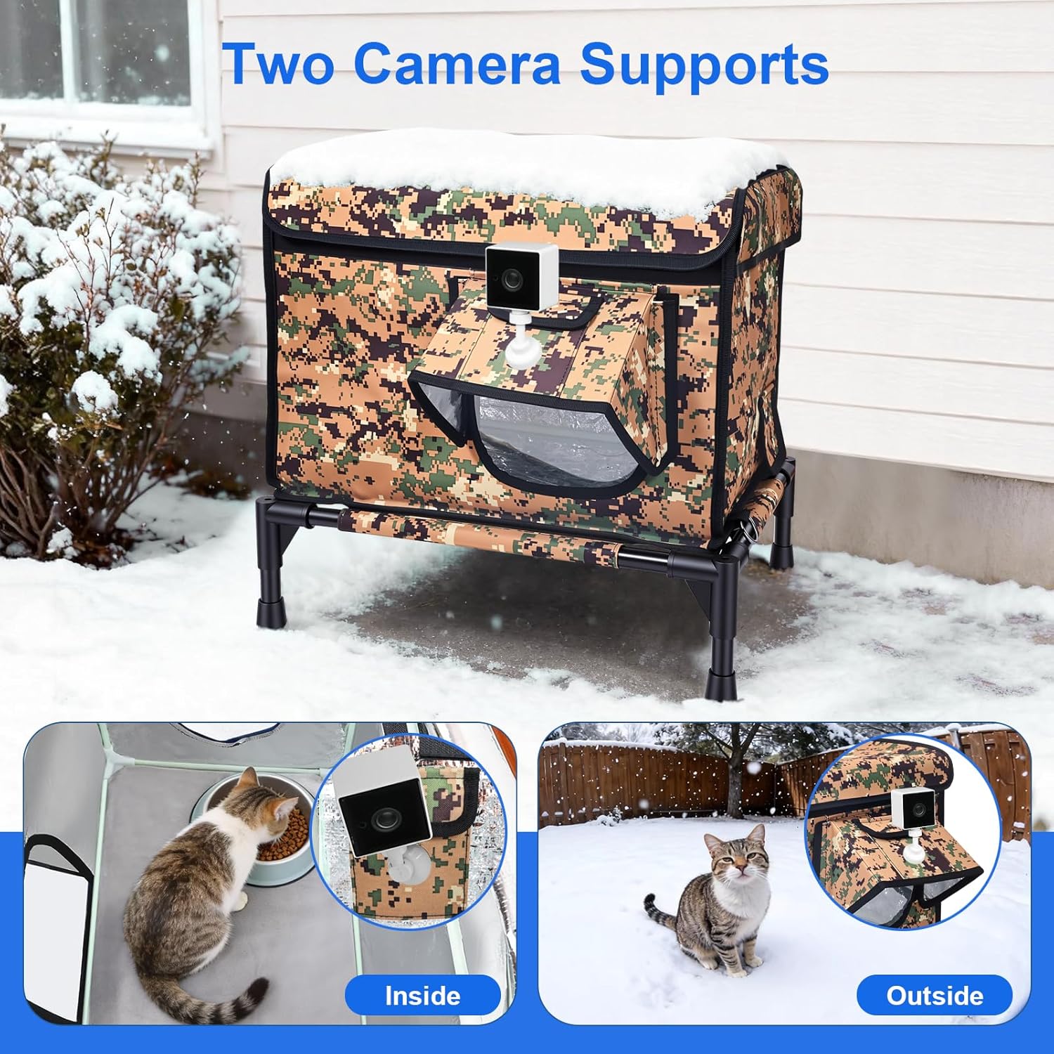 Warm & Insulated for Freezing Weather: Keep felines cozy in sub-zero temps with our heated cat house for outside—a versatile heated pet house! 5-layer aluminum foil insulation + UL-tested waterproof heating pad (43°F-118°F) locks in heat; chew-resistant cord for safety. Two sizes: L (25.6"×16.5"×18") for 2 cats/larger breeds; S (17"×13"×17.1") for 1 cat/small pets. Perfect for porches, yards, barns—reliable winter warmth!