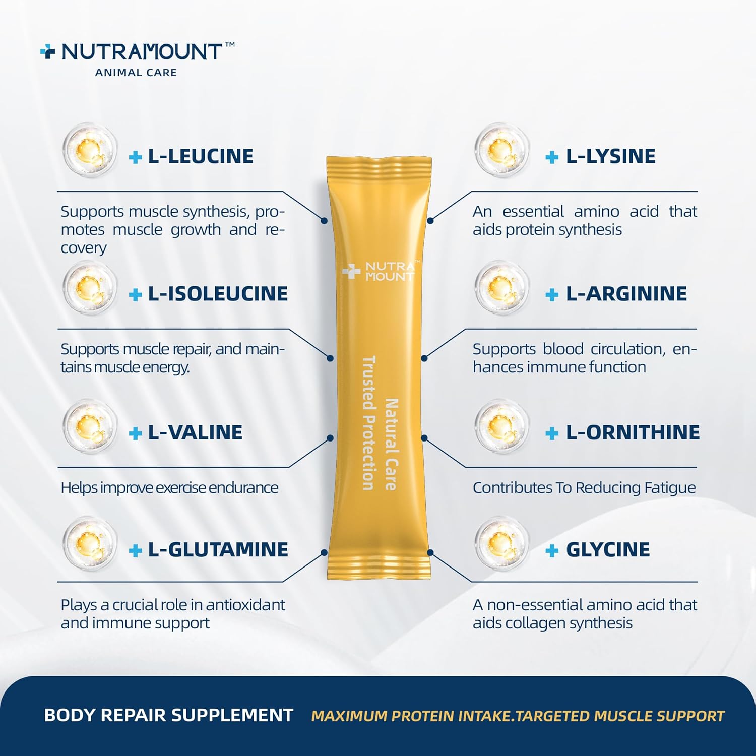 About this item Build Strong, Defined Topline:Formulated with essential amino acids to support topline development and overall muscle definition, ideal for performance, working, and underweight horses. Faster Muscle Repair & Recovery:Supports efficient muscle recovery after training or strenuous work, helping horses bounce back faster and maintain peak performance. High-Strength Amino Acid Blend:Powered by L-Lysine, Arginine, Ornithine, and Leucine—key building blocks for protein synthesis, stamina, and healthy muscle growth. Joint & Connective Tissue Support:Strengthens tendons, ligaments, and connective tissues through enhanced collagen support—reducing the risk of strain or injury during exercise. Easy-to-Feed Daily Formula:Tasty beetroot powder base for natural palatability; 30-day supply designed for consistent daily use to improve muscle condition and body composition. › See more product details