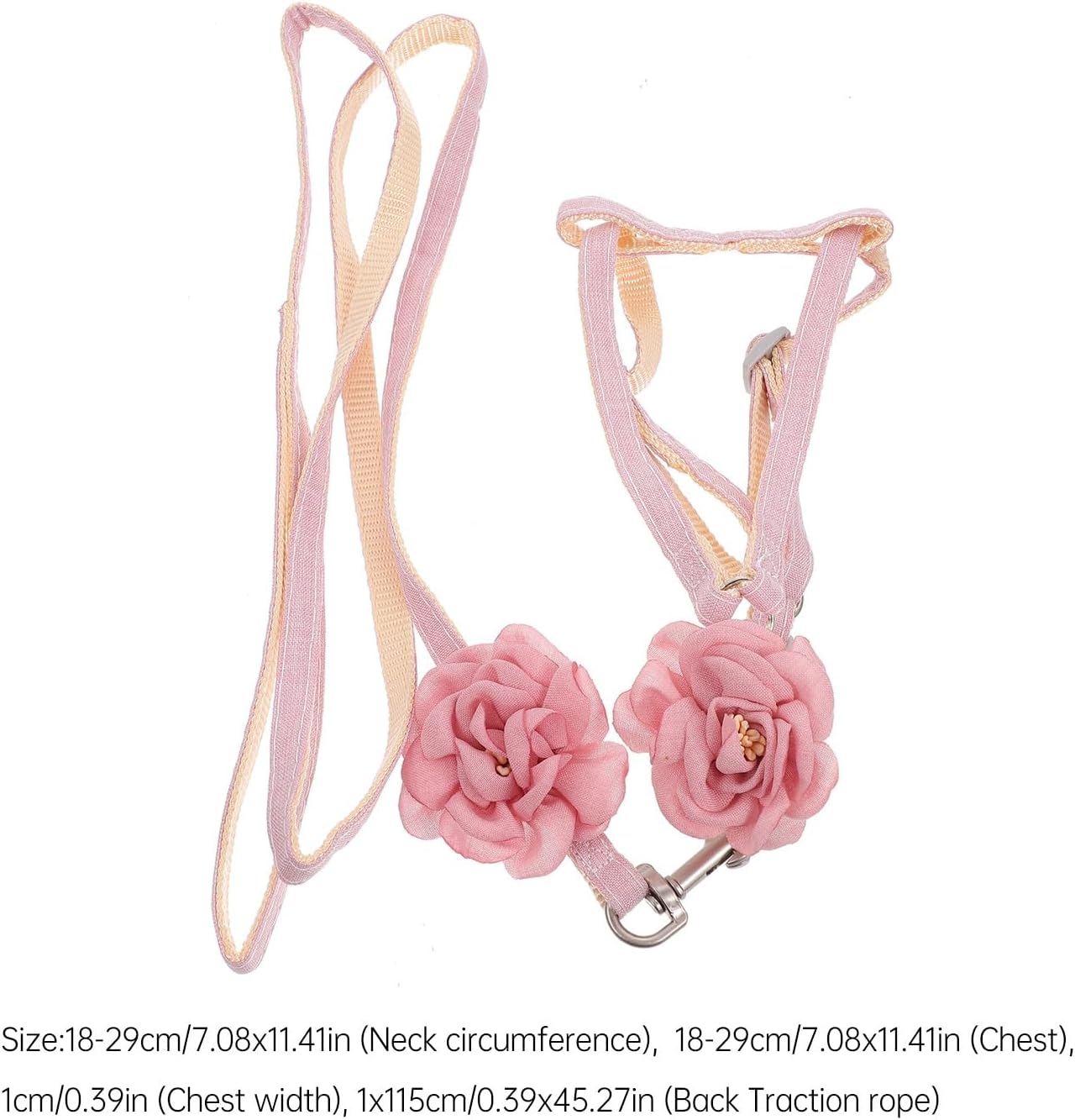 Package List 1 x Cat Harness Characteristics -Size:18-29cm/7.08x11.41in (Neck circumference), 18-29cm/7.08x11.41in (Chest), 1cm/0.39in (Chest width), 1x115cm/0.39x45.27in ( rope) -Product Info:Pet leash -Material:cloth -Breathable, your pet will feel no burden when wear the harness cat harness flower. -Creative and fresh design make your pet looks fashion and adorable cat harness and leash. -Made with good materials for a long time safe use. -Durable and easy to clean. Light weight and comfortable to wear cat harness strap. -Soft and comfortable pet harness, it is great for your pets when going out Traction Rope for Pet.Goods Descriptionharness for cat While your little friend is wearing this strap and walking with you can be a enjoyable experience for you and your pets.traction rope pet This , lightweight harness made of breathable and sturdy nylon will help make sure pet stays safe