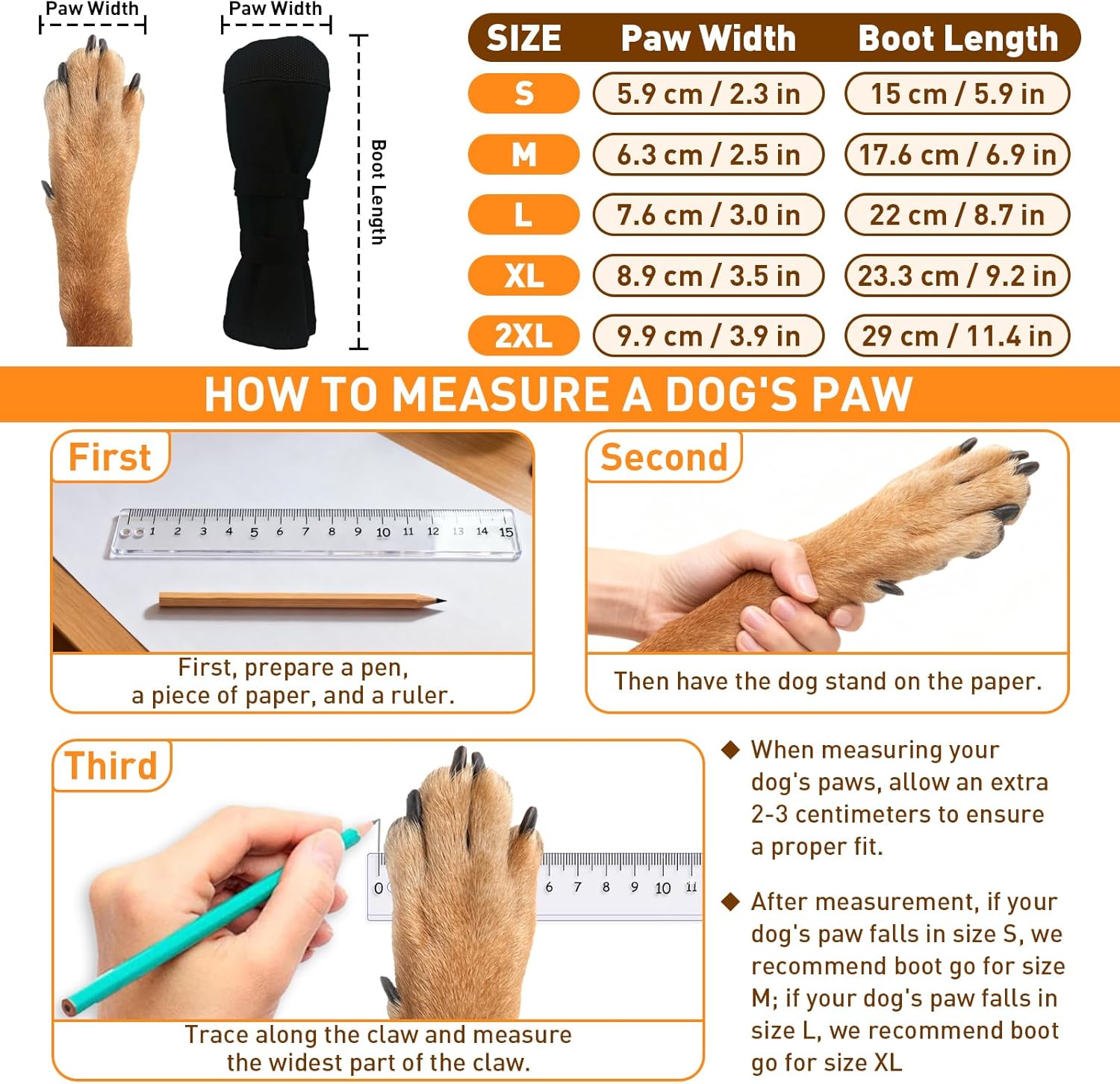 About this item Premium Dog Paw Protectors for Injury Recovery: Soft, breathable fabric promotes healing. Perfect for post-surgery, wounds, bleeding nails, or torn paw pads. Suitable for everyday wear, walks, runs, & hikes Anti-Licking & Healing Support: Designed to prevent dogs from licking wounds, allowing for faster recovery. Provides a safe barrier during sensitive healing periods Adjustable Sizes for All Breeds: Available in S/M/L/XL, ensure a secure and comfortable fit for your pet. Refer to our sizing guide for precise measurements Durable & Non-Slip Outsoles: Made from durable polyester with grippy texture, offering enhanced traction on various surfaces. Ideal for hardwood floors to outdoor adventures Easy to Wear & Stay On: Featuring a convenient magic sticker closure, keeps paw covers securely in place during active play. Soft fleece lining ensures comfort without constriction. Great for indoor & outdoor use › See more product details