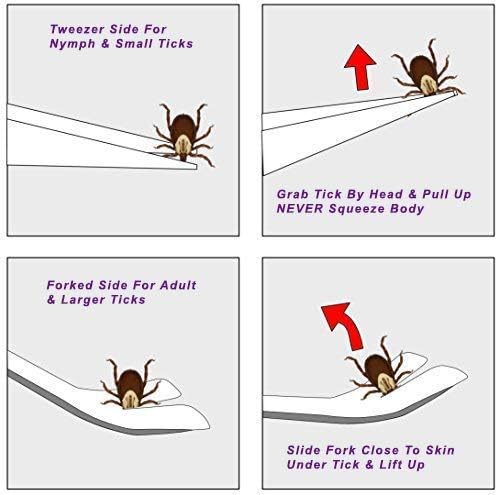 (2 Pack) CLINIC APPROVED: Quickly remove the ENTIRE tick with ease reducing the risk of infection WORRY FREE: Special design pin-sharp pointed tick tweezers will completely remove all the tick CONFIDENCE: Slotted fork end will quickly and easily remove engorged ticks of all sizes from pets RELIABLE: All in one dual sided stainless steel surgical grade instrument removes all of any type tick CONVENIENT: Protective leather case keeps tick removal instrument in clean and sterile enviornment ready for use › See more product details