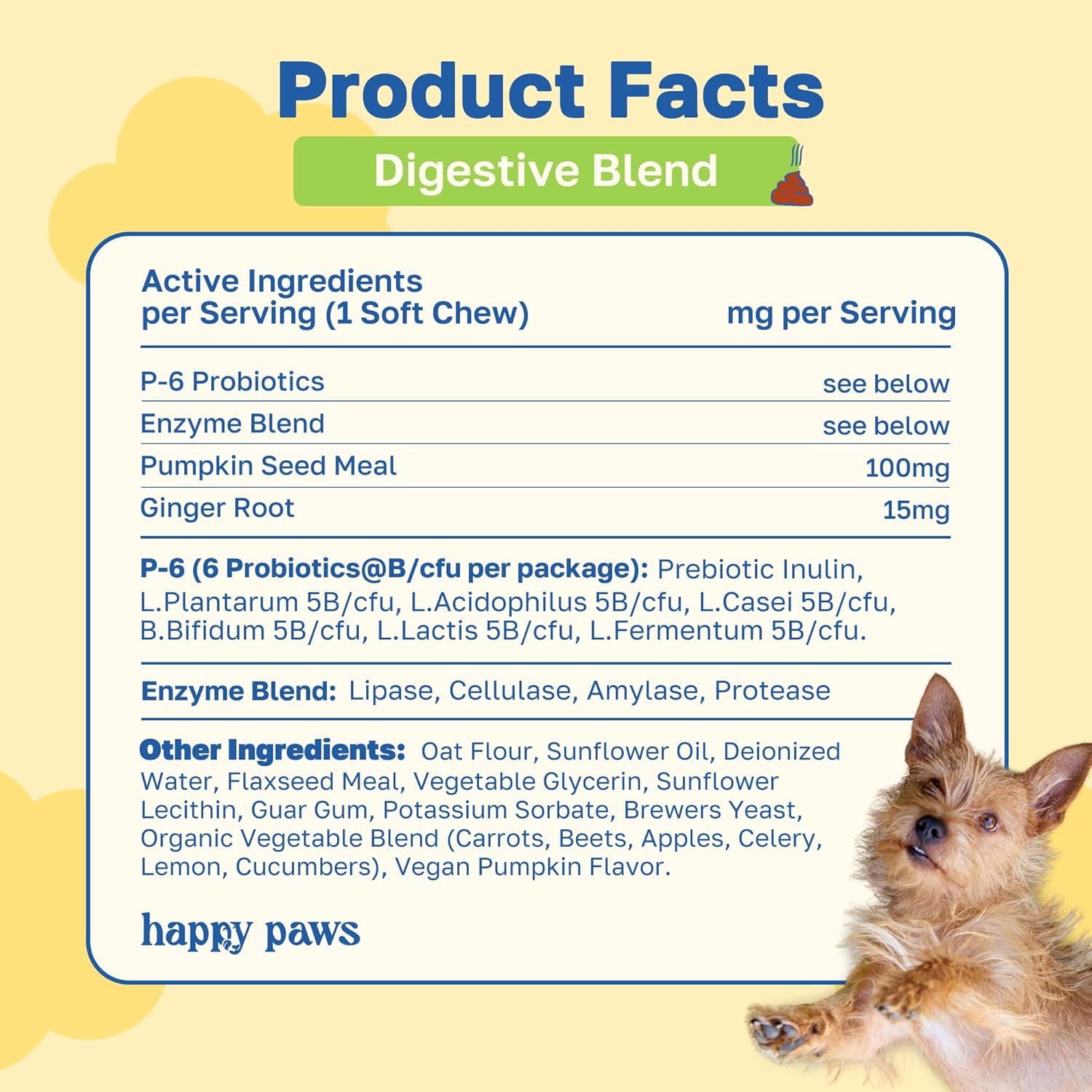 Support your dog’s everyday wellness with the Everyday Pup Pack – a 3-in-1 bundle designed for complete canine health. This trio includes 300 soft chews featuring a daily multivitamin, probiotic gut health support, and digestive enzymes for balanced nutrition. Formulated with premium natural ingredients like pumpkin, green-lipped mussel, sea kelp, colostrum, and coconut oil, each chew targets essential areas such as digestion, immunity, skin and coat, and mobility. With tasty lamb, chicken, and pumpkin flavors, these easy-to-serve soft chews are perfect for dogs of all ages and breeds. Happy Paws chews are made in the USA, non-GMO, vegan-friendly, and free from artificial additives – a wholesome way to support your dog’s daily health from the inside out.
