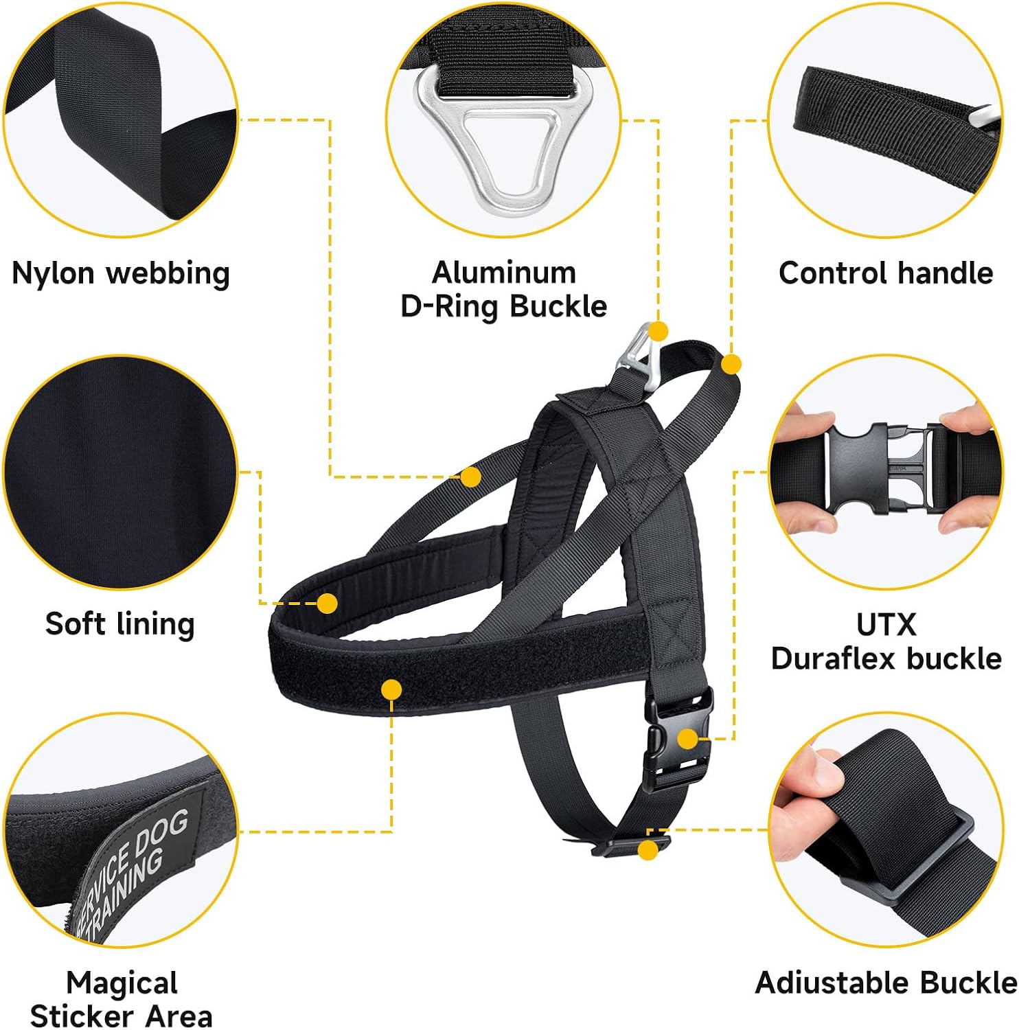 About this item Durable Material:The best dog harness for dogs is made of high quality and durable nylon material with neat stitching and soft padded lining to provide a safe and comfortable feeling to your dog. Free and Comfortable: The dog harness small just a few straps nothing unnecessary on your dog's body,so you won't worried that the puppy no pull harness will rub too much under the arms.The padding appears to make it more comfortable so they will leave it alone. This no pull dog harness is easy take on and off. The head opening is very roomy, so you don't have to struggle or do magic sticker to get it off your dog.It easily goes over your dog's head. Easy contorl for Easy dog harness. You can control your dog with the nylon handle,or hook the V-shaped aluminum alloy buckle on the top of this puppy harness chest with dog leash firmly to provide you the best control on your dog. 100% Quality Warranty: Your satisfaction is our first priority, we take care of all quality-related issues within 90days; If you encounter any problem while using, never hesitate to send email to us and we will make it all right for you. › See more product details