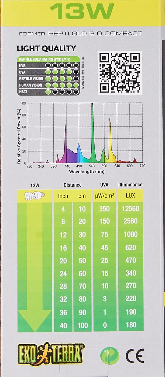 - Model Name: Exo Terra Repti Glo 2.0 Full Spectrum Terrarium Lamp, 13 Watts