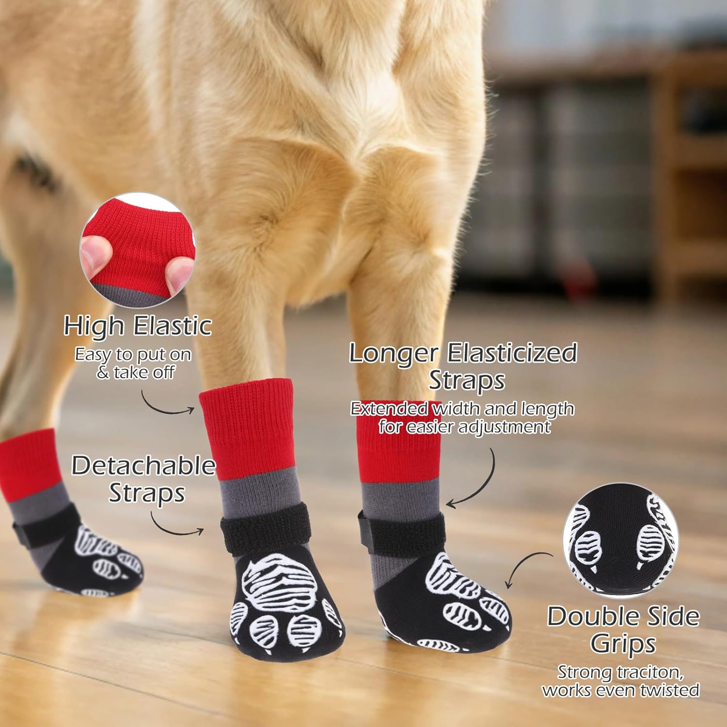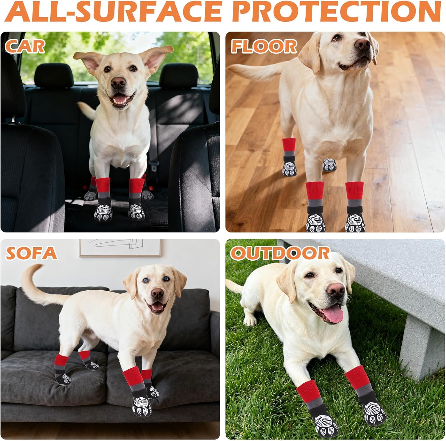 SUITABLE FOR SMALL BREED DOGS: Paw width 2.1", Length 5.7", Grip Width 1.5". Available in multiple sizes to fit a variety of pets. Be sure to measure your pet's paw before purchasing. If your measurements fall between two sizes, we recommend choosing the smaller size, as our socks are made from elastic fabric for a snug fit UPGRADED DOUBLE ANTI-FALL DESIGN: In addition to the hook-and-loop fastener on the sock body, we've added two rows of Adhesive Points Inside the sock cuff that grip your dog's paws, providing extra hold and stability. This design ensures that the socks stay in place comfortably, offering maximum protection and warmth for your dog's paws without the risk of them falling off during play or walks ALL-WEATHER PAW PROTECTION: Protect your dog's paws in every season with Expawlorer Dog Socks & Boots. Hot ground can cause discomfort and even injury to the paws, but our dog paws can prevent direct contact with the hot ground, making it easier to walk dogs during hot summers. Our dog socks can also be used on cold snow and slippery ice in winter, on hardwood floors in homes, and with injury prevention and licking functions. Breathable and comfortable, suitable for all seasons COMFORTABLE TO WEAR: Our dog socks are made from high-quality, breathable materials(75%cotton + 25%Polyester), these socks provide comfort and support while withstanding everyday wear and tear. The socks have elasticity and do not feel tight, making them comfortable to wear. Summer won't feel stuffy, winter can provide warmth, making them ideal for both indoor and outdoor use DOUBLE-SIDED GRIPS: Designed with unique claw-shaped grips on both sides, these socks offer excellent traction, reducing the risk of slips on smooth surfaces. Perfect for puppies, senior dogs, and pets who need extra stability. Multiple colors to choose from, unique and eye-catching color blocking design, suitable for both boys and girls › See more product details