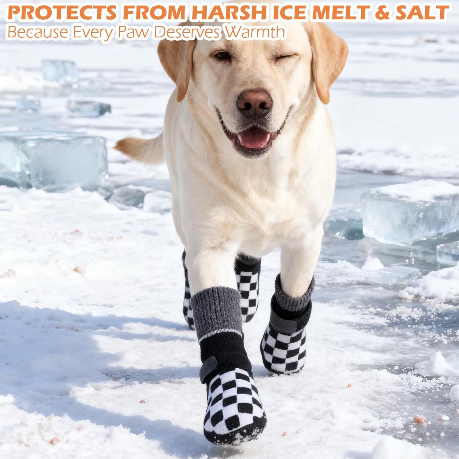 SUITABLE FOR LARGE BREED DOGS: Paw width 3", Length 7.2", Grip Width 1.8". Available in multiple sizes to fit a variety of pets. Be sure to measure your pet's paw before purchasing. If your measurements fall between two sizes, we recommend choosing the smaller size, as our socks are made from elastic fabric for a snug fit ENHANCED SAFETY & HIGH VISIBILITY: Our dog socks are specially designed with a reflective yarn to make your furry friend visible during early morning or late evening walks, keeping them safe in low-light conditions ALL-WEATHER PAW PROTECTION: Protect your dog's paws in every season with Expawlorer Dog Socks & Boots. Hot ground can cause discomfort and even injury to the paws, but our dog paws can prevent direct contact with the hot ground, making it easier to walk dogs during hot summers. Our dog socks can also be used on cold snow and slippery ice in winter, on hardwood floors in homes, and with injury prevention and licking functions. Breathable and comfortable, suitable for all seasons COMFORTABLE TO WEAR: Our dog socks are made from high-quality, breathable materials(75%cotton + 25%Polyester), these socks provide comfort and support while withstanding everyday wear and tear. The socks have elasticity and do not feel tight, making them comfortable to wear. Summer won't feel stuffy, winter can provide warmth, making them ideal for both indoor and outdoor use DOUBLE-SIDED GRIPS: Designed with unique chessboard pattern grips on both sides, these socks offer excellent traction, reducing the risk of slips on smooth surfaces. Perfect for puppies, senior dogs, and pets who need extra stability. Multiple colors to choose from, unique and eye-catching color blocking design, suitable for both boys and girls › See more product details