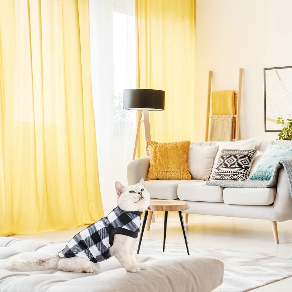 About this item SIZE S: The cat sweater has a neck girth of 11.4 inches, a chest girth of 13.4 inches, and a back length of 12.2 inches, it is designed for cats and puppies. Please measure your size carefully before purchasing. COZY: The pet hoodie is made of warm and soft fleece, which has a good cold-proof effect and keeps your pet warm in fall and cold winter. It also can be used as pajamas, soft and comfortable. PULLOVER: The pet vest coat can be pulled on directly. The forelegs part is not divided, which will not give your cat and puppy too much restraint, and makes them more relaxed. CLASSIC PLAID: The buffalo check looks stylish and fashionable. It's an ideal holiday gift for your furry friend when Halloween, Thanksgiving, or Christmas comes around. MACHINE WASHABLE: The sweatshirt is made of fleece. You can put it in the washing machine and dry it, it's very easy to take care of. No more worrying about your pet getting it dirty and making them hard to clean. › See more product details