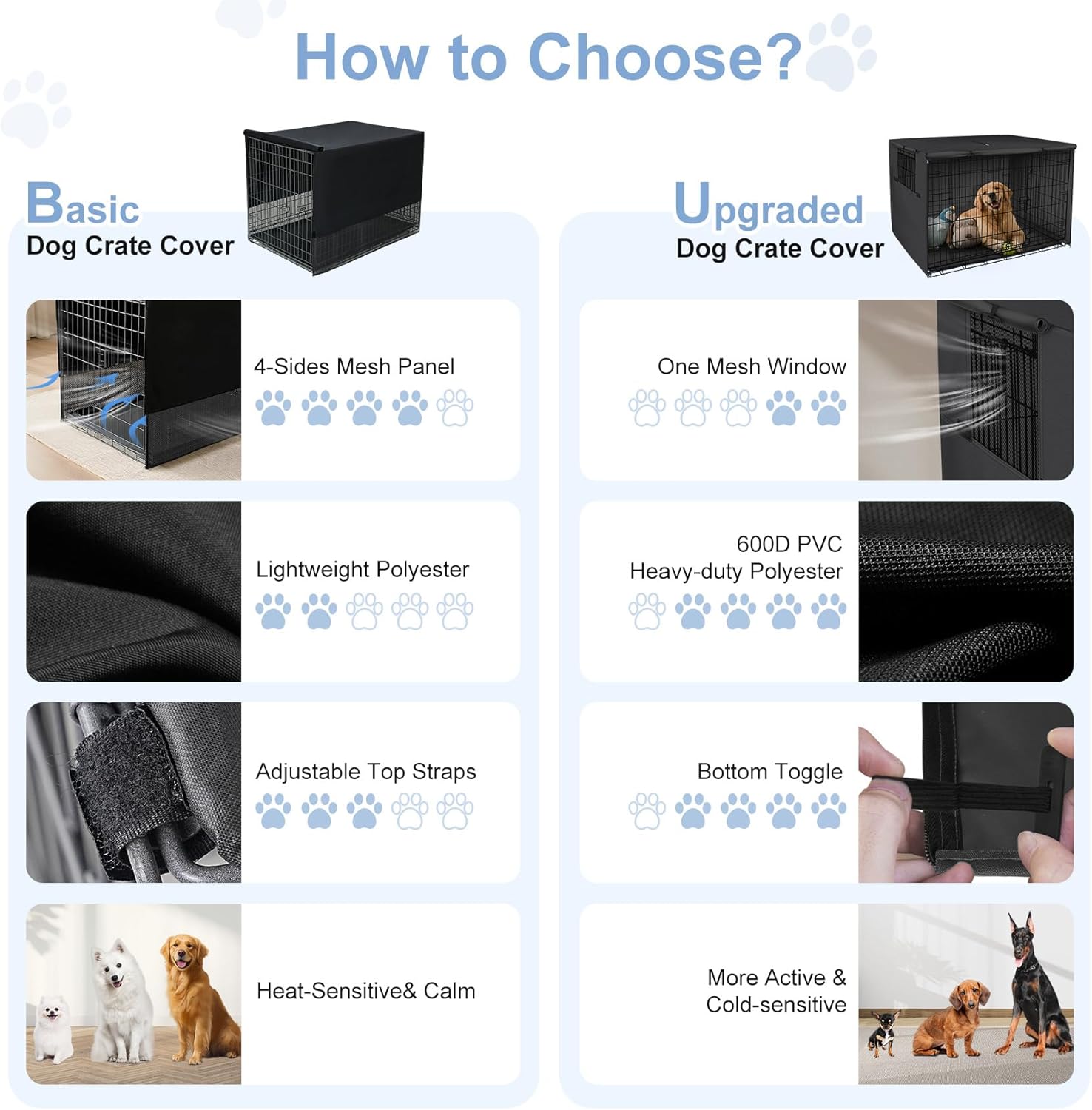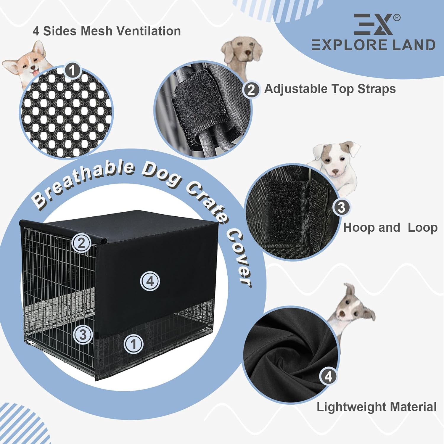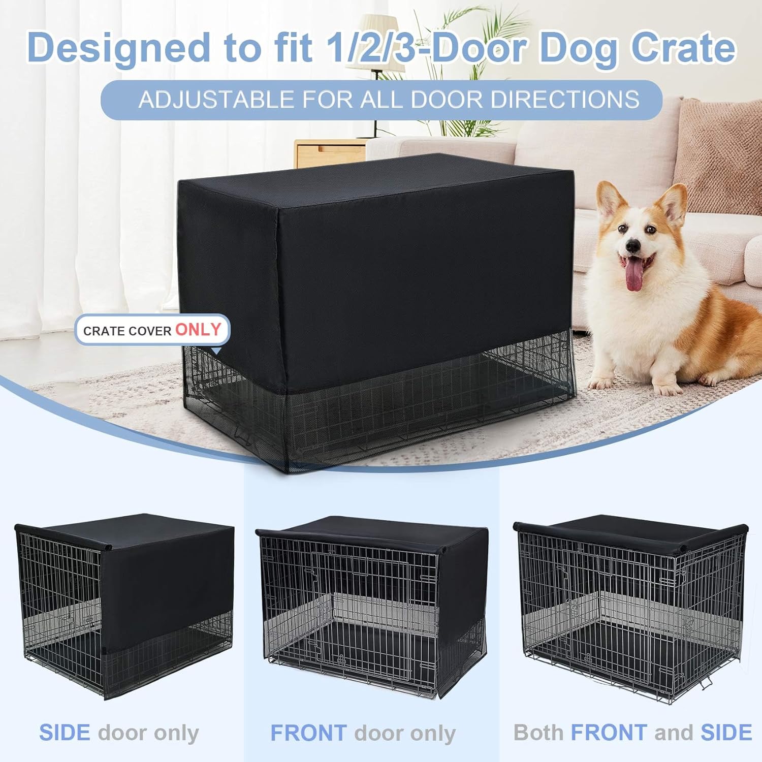 【Only Cover, Without Crate】Dimensions: 24"L x 18"W x 20"H, offering a universal fit for most brands' 24-inch standard wire crates (compatible with 1-door, 2-door, and 3-door models, suitable for daily use or travel). 【4 Sides Mesh Ventilation】 Large breathable mesh panel ensures continuous airflow. Mesh material provides adequate ventilation and visibility. 【Basic Crate Cover】This crate cover is for basic use only. Made of light synthetic material, it offers basic light blocking and good ventilation. Which provides a security and privacy space for your lovely dogs. 【Easy to Install】Simply drape over the crate and stick four sides of velcro to secure the dog crate. 【Anxiety-Reducing Den】This kennel cover creates a den-like dark space for your pet. By minimizing light penetration and blocking external distractions (movement/noise), it effectively reduces dog’s anxiety. The enclosed environment cultivates a sense of security, ideal for anxious pets during sleep, naps, rest, or travel › See more product details
