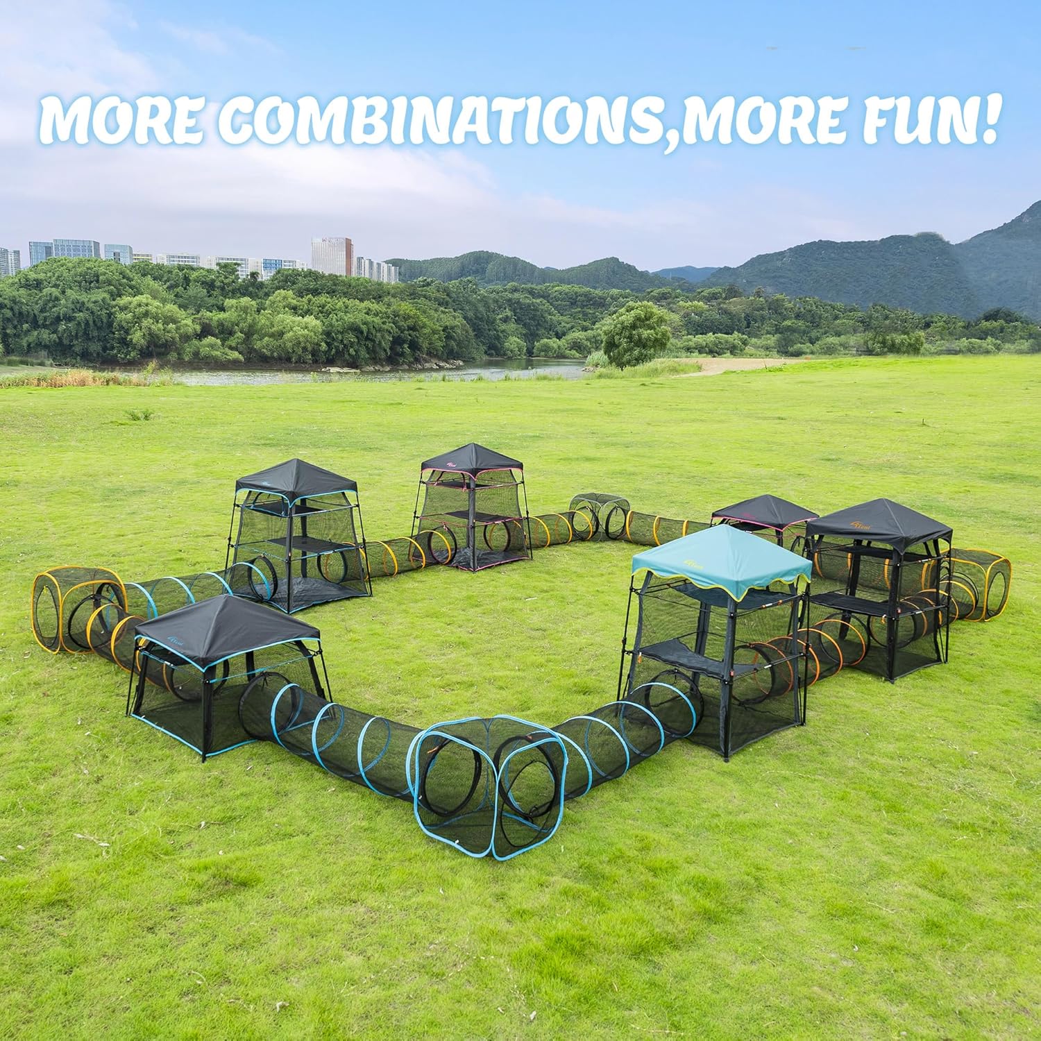 About this item Patent Quick Setup Structure: Easy Setup and Takedown, made of durable and high-quality anti scratch mesh, with our latest hub design,thicker poles and reinforced joints, which are more stronger and more stable than other similar models on the market. Sturdy enough for both indoor and outdoor use. PERFECT FOR INDOOR & OUTDOOR USE: The 2-tier design is perfect for one or more cats to jump or explore like shelfs for them to lounge,good for relaxation,reducing stress and preventing furniture damage. Ideal for your kittens to breathe fresh air without worrying about them getting hurt or running away, keeps your pets indoor closer to nature. TWO DOORS DESIGN:Two doors design can assemble more shape.They can assemble with our tunnel, cube,3 Tier cat tower tent or pet mansion to create a giant pet castle,more fun for your pets. Itent products are compatible, free combination. PORTABLE & FOLDABLE: Portable & foldable, lightweight design.Compact design easily folds into a convenient carrybag for travel, storage, and convenience. Looking for a Christmas gift for your furry friend? Look no further than this 2 Tier catio! With breathable mesh,360-degree view for your pets to explore.Keep your cats or small animals close to nature and away from bugs and predators.Perfect Christmas gift for your cats. INCLUDES ONE CAT TENT AND CAT TEASER – Includes one cat tent and one cat teaser with a carrybag.Better to store inside after outdoor use. › See more product details