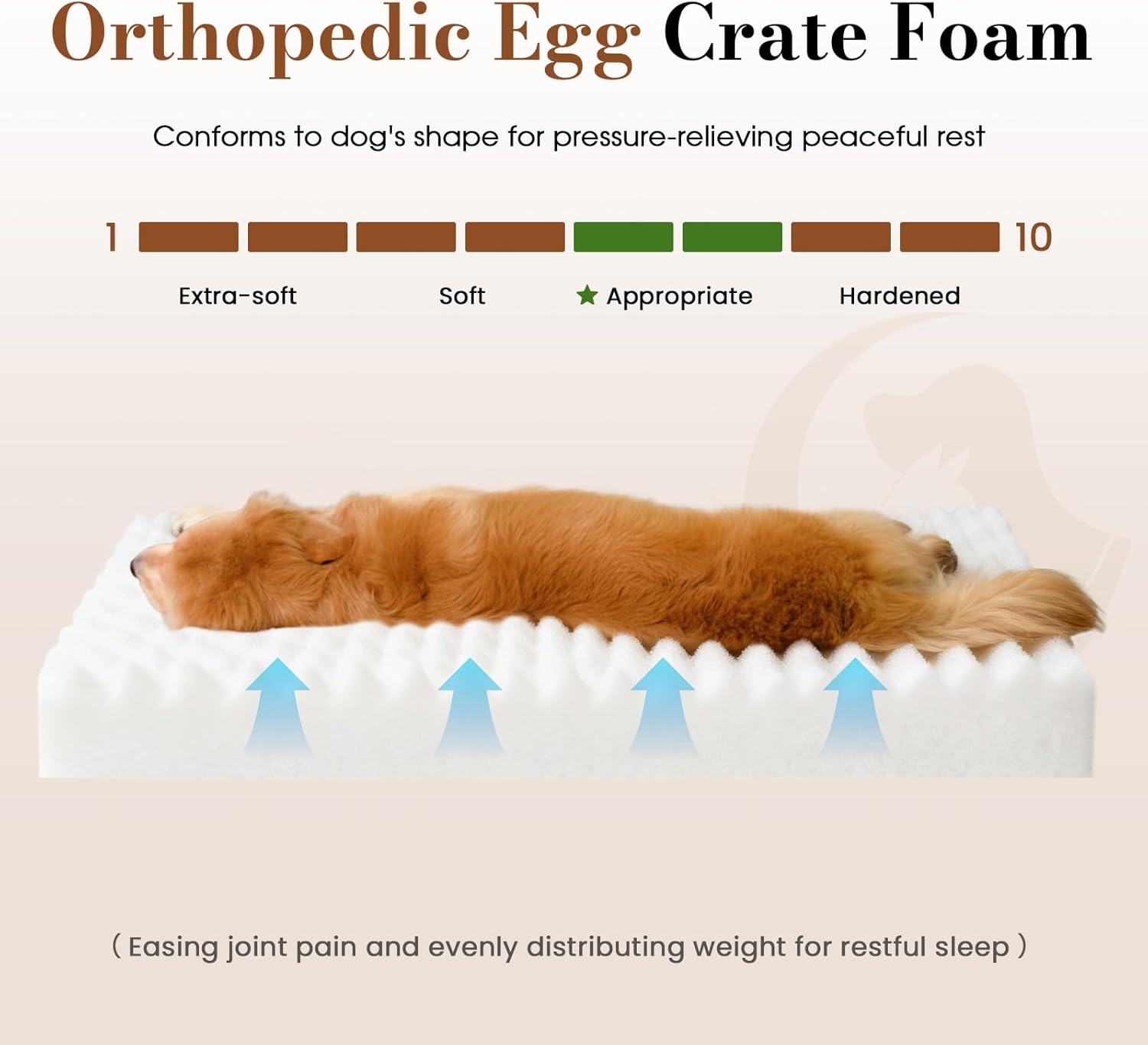 About this item 【Cloud-Like Support for Your Pup's Joints】Sink into luxury with our high-density, ribbed plush dog bed! The velvety texture feels like a cloud under your pet’s paws, while the supportive foam core eases pressure on hips, elbows, and joints—perfect for senior dogs or energetic pups who love to lounge. 【Pet-Friendly】Your pet’s health is our priority! The plush cover is OEKO-TEX certified, while the high-density foam core is CertiPUR-US certified. 【Easy to Clean】Accidents happen, but cleanup is a breeze! The removable, machine-washable cover resists stains and odors, while the waterproof inner liner protects the foam core from spills. Tumble dry low for a fresh, like-new bed in no time. 【 Non-Slip Design for Safe Play & Rest】No more sliding or shifting! Our dog bed features a durable non-slip bottom that grips carpets, hardwood, or floors, keeping your dog steady during zoomies or naptime. Ideal for active breeds or homes with kids—safety meets coziness. 【 Find Your Dog’s Perfect Fit】Choose the ideal size for your furry friend: Medium (30"x20"x3") for small to medium breeds, Large for Crate (35"x22"x3") designed to fit standard 36" crates, Large (36"x27"x3") for medium to large breeds, X-Large for Crate (41"x27"x4") fitting 42" crates, X-Large (42"x30"x4") for active large breeds, and XX-Large (47"x29"x4") for giant breeds—ensuring every dog gets the perfect balance of space and comfort. › See more product details