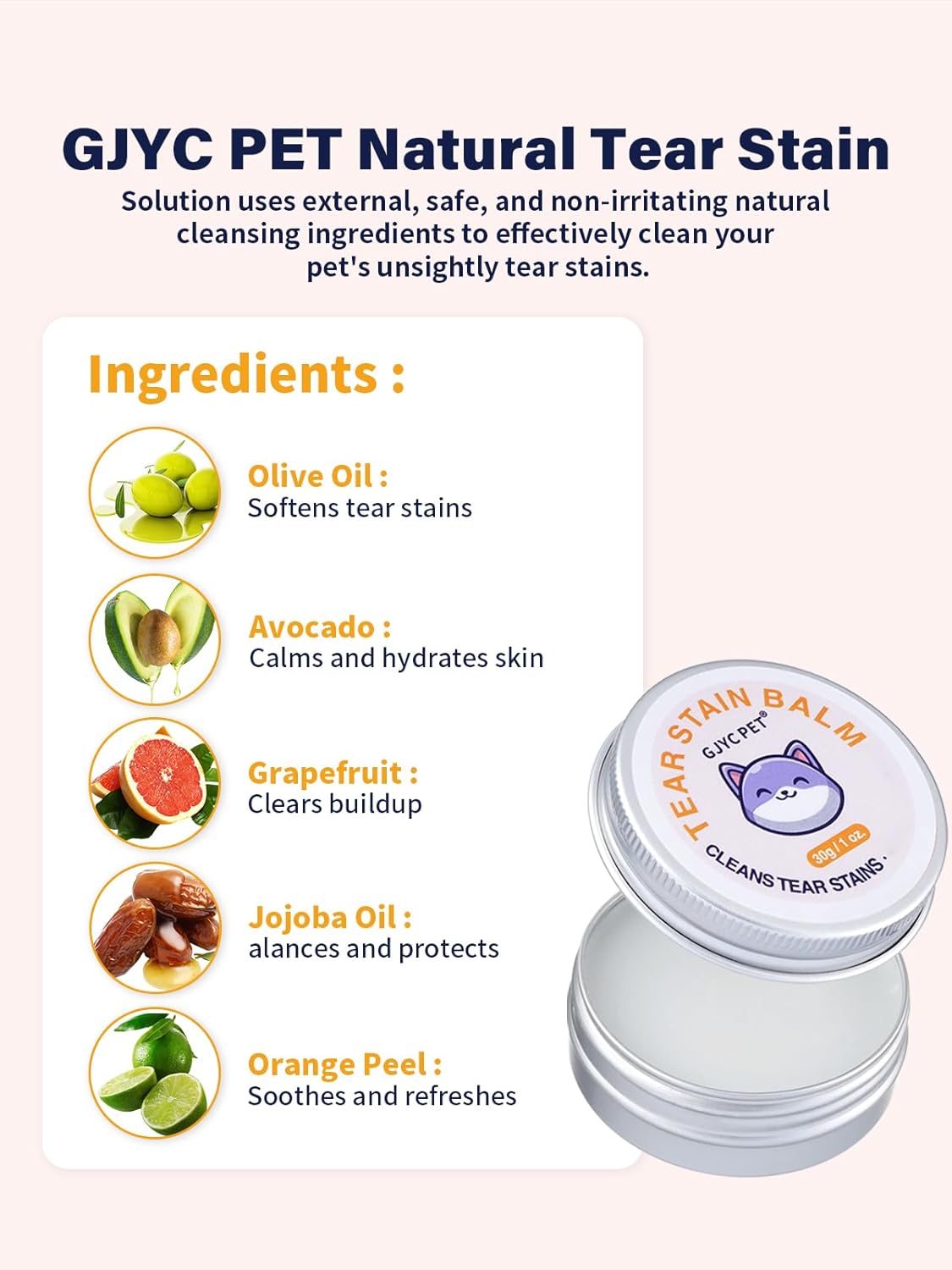 COMPLETE TEAR STAIN REMOVAL KIT:This all-in-one kit includes tear stain remover balm, a tear stain comb, a pro powder brush, and 20 eye cotton pads to thoroughly clean your pet’s eyes, reduce tear stains, and prevent new stains from forming. EFFECTIVE TEAR STAIN & EYE CARE: Gently removes severe tear stains, eye debris, discharge, and mucus from dogs and cats. Helps restore a clean, shiny appearance to the fur while keeping the eye area bright and healthy. SOOTHING & PH-BALANCED BALM:Crafted with gentle ingredients like olive oil, avocado extract, and grapefruit essence to nourish the delicate eye area and support a healthy moisture balance. Helps soften tear stains and keep the eye area fresh and comfortable. PREVENTS FUTURE TEAR STAINS: Our balm forms a protective barrier around your pet’s eyes to help prevent tear-induced pigmentation and future staining. Ensure your pet's eyes remain clean and white with regular use. USER-FRIENDLY & SAFE FOR PETS: Easy to apply – simply use the comb and cotton pads to clean the area around the eyes, then gently massage a small amount of the balm into the skin folds with the pro powder brush. Safe and gentle for all types of pets. › See more product details
