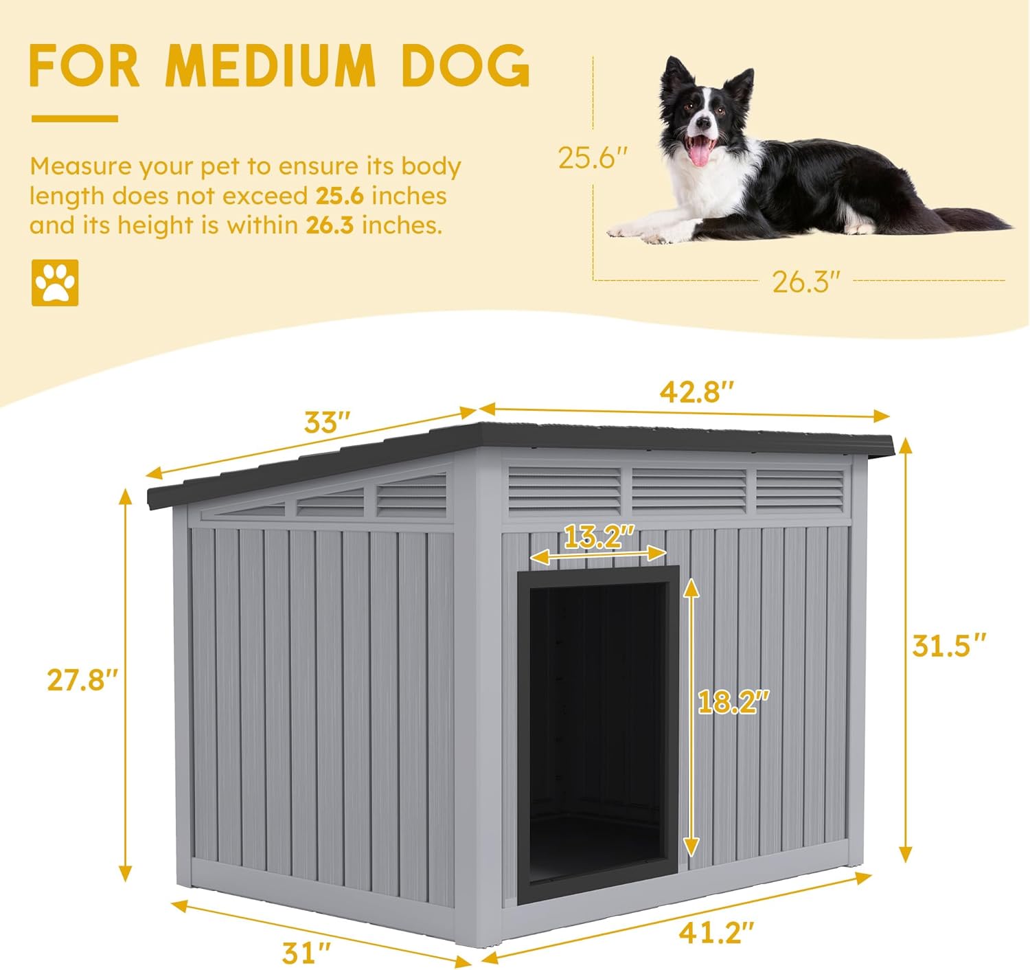 About this item đăSafe & Sturdy Dog Houseă: The hinged roof smoothly opens with hydraulic gas struts on both sides. Constructed from high-quality PP (polypropylene) material, it ensures secure support and stable operation even under impact. This robust mechanism enhances the kennel's longevity and safety, providing reliable shelter for your pet. đăStylish & Spacious Designă: Featuring a minimalist yet modern exterior, our dog house offers ample interior space for pets to stand, turn, and rest comfortably. The slanted roof effectively directs rainwater away from the entrance, keeping the interior dry. đăEasy-to-Clean & Low Maintenanceă: The gas-strut-assisted roof opens effortlessly, allowing quick and hassle-free cleaning to maintain a hygienic living environment for your pet. Louvered ventilation panels around the structure ensure optimal airflow, letting your furry friend enjoy fresh air while keeping rain out. đăMultiple Size Optionsă: Available in two sizes to accommodate small, medium, and large dogs, this dog house is perfect for both indoor and outdoor use. It provides year-round protection for pets who love the outdoors or need a sheltered retreat. đăWeather-Resistant Constructionă: Built to withstand harsh conditions, this outdoor dog house features an asphalt-reinforced roof that stands up to rain, wind, and extreme weather, ensuring your pet stays safe and comfortable in any season. Should you have any questions, please feel free to contact us. âș See more product details