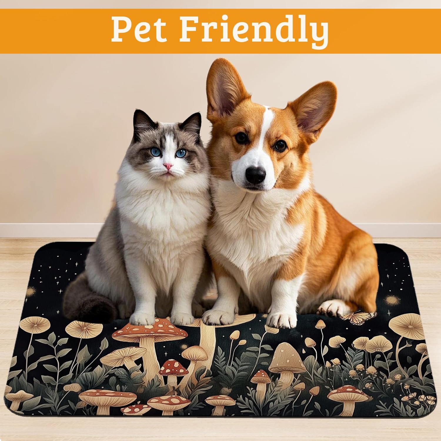 About this item Material:Made from tear resistant and chew resistant fabric that withstands claws and paws without fraying. Sturdy yet soft texture provides comfort while ensuring long term use. The design makes it a reliable pet feeding mat for both cats and dogs. High Absorption:These Pet Mat made with highly absorbent fabric that quickly soaks up spilled water, milk, or food messes to keep the feeding area clean and dry.Helps reduce wet paw prints and sticky residues.A practical dog bowl mat or pet feeding mat for messy eaters and playful drinkers. Non Slip Backing:Anti skid rubber base grips firmly to the floor to prevent sliding or bunching while pets eat or drink. The waterproof layer blocks spills from seeping through, protecting wood, tile, or laminate floors from damage. Ideal as a dog feeding mat or cat food mat in any home. Easy to Clean:Designed with a smooth surface that resists hair, dust, and stains. Simply wipe with a damp cloth for everyday care or rinse under running water for a deeper clean. Washable and quick drying, making this pet food mat a convenient solution for daily use in multi pet households. Multi Purpose:Works perfectly under food bowls, water dispensers, or automatic feeders to prevent spills and messes. Can also be used as a cat litter mat or resting mat. Lightweight and rollable for easy storage or travel, making it a thoughtful and practical gifts for pet owners. › See more product details