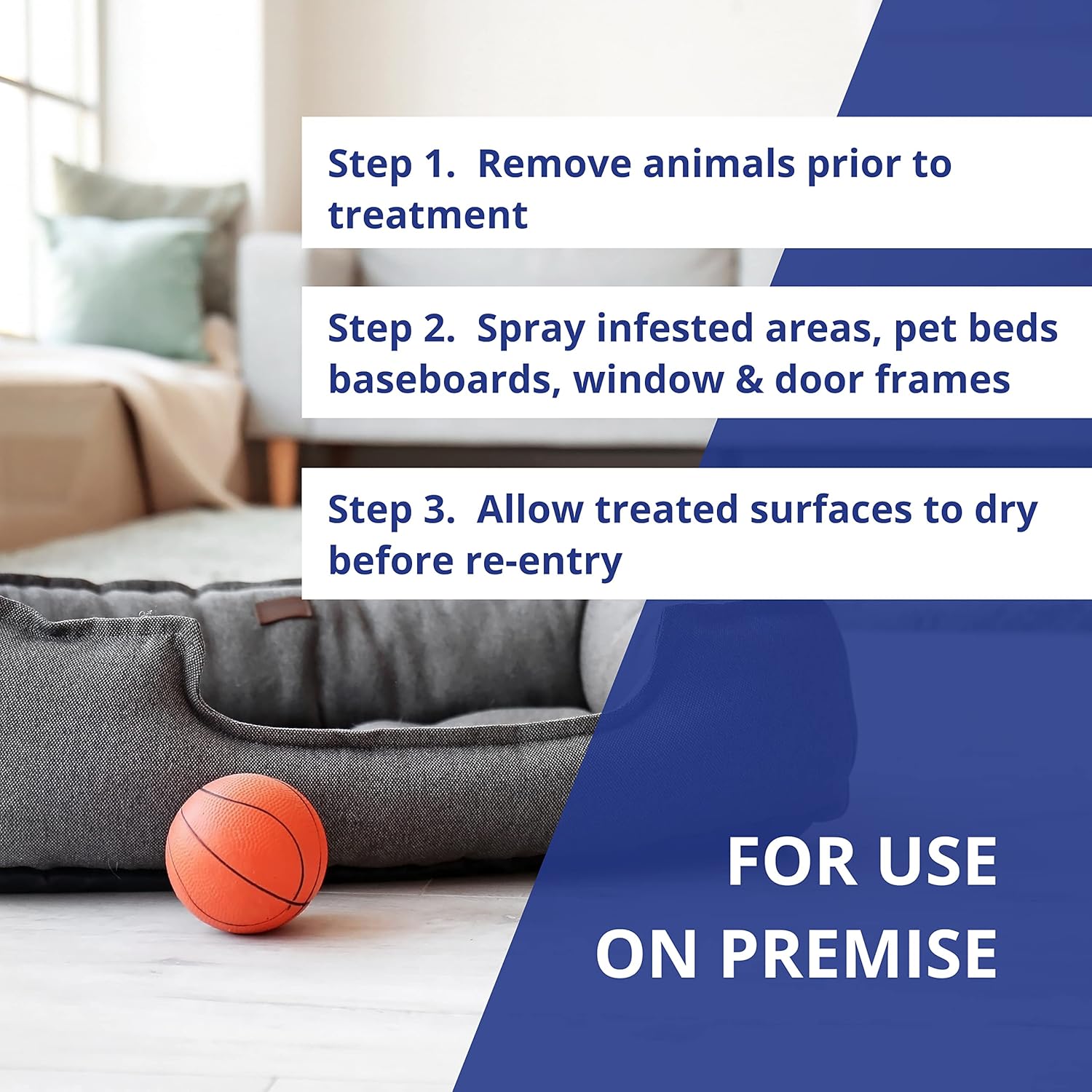 Flea Halt Water Based Flea & Tick Spray for Dogs and Premises. Insecticide and repellent that kills fleas and ticks on dogs and controls fleas and brown dog ticks on premise.