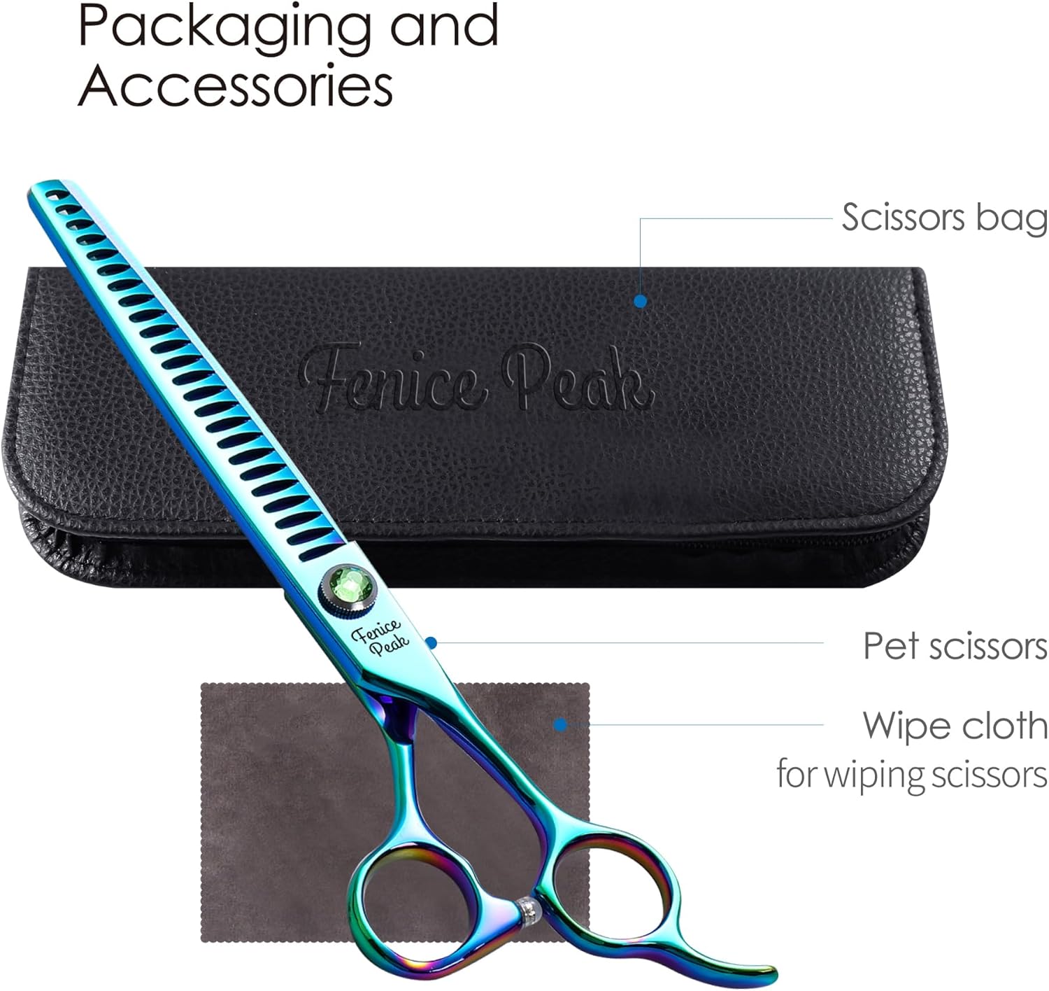 Fenice Peak 7.5'' Green Chunker Dog Grooming Scissors Pet Shears with Ergonomic Offest Handle and Simulated Emerald Screw 440C Grooming Scissors Trimming Shears Durable and Sharp