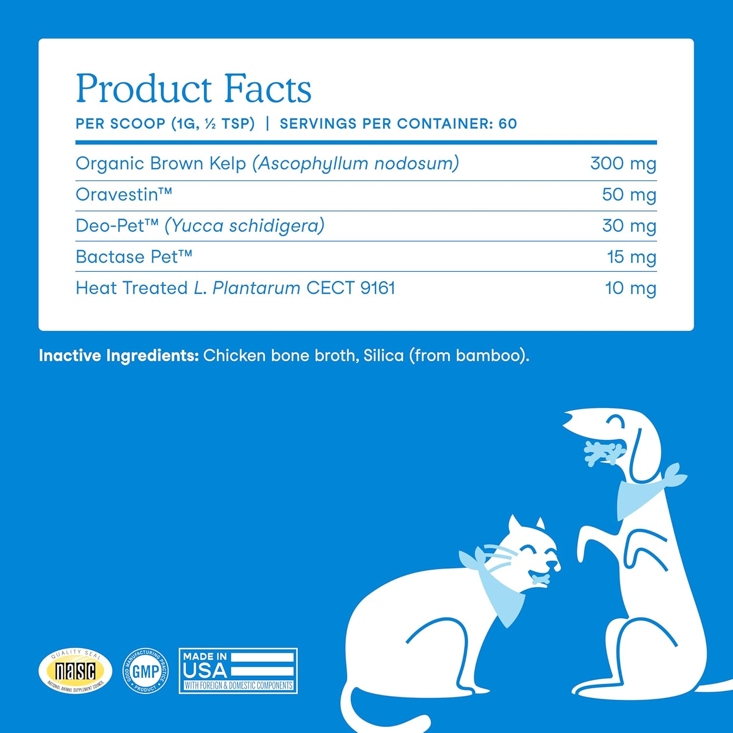 No toothbrush required: Unlike traditional dental products, our Dental Powder goes beyond mechanical cleaning to promote a healthy oral microbiome, promoting healthier gums and teeth from the inside out. No fillers: Formulated with organic brown algae (ascophyllum nodosum), our Dental Powder promotes fresh breath by supporting healthy teeth and gums while targeting tartar build up Veterinarian formulated: Dental support is crafted by our Co-Founder, Veterinarian Dr. Dulake; our Dental Powder for dogs and cats bears the NASC quality seal, is made in the USA, GMP-compliant, and does not contain colors, dyes or preservatives Directions for use: Feed orally with included scoop. Use regularly on a long-term basis for best results. Under 25lbs, give 1 scoop; 26-50lbs, give 2 scoops; 51-75lbs, give 3 scoops, and above 76lbs, give 4 scoops. Suitable for all pet ages. Care from head to tail: Customer service is our top priority, if unsatisfied please feel free to contact us with any questions. › See more product details
