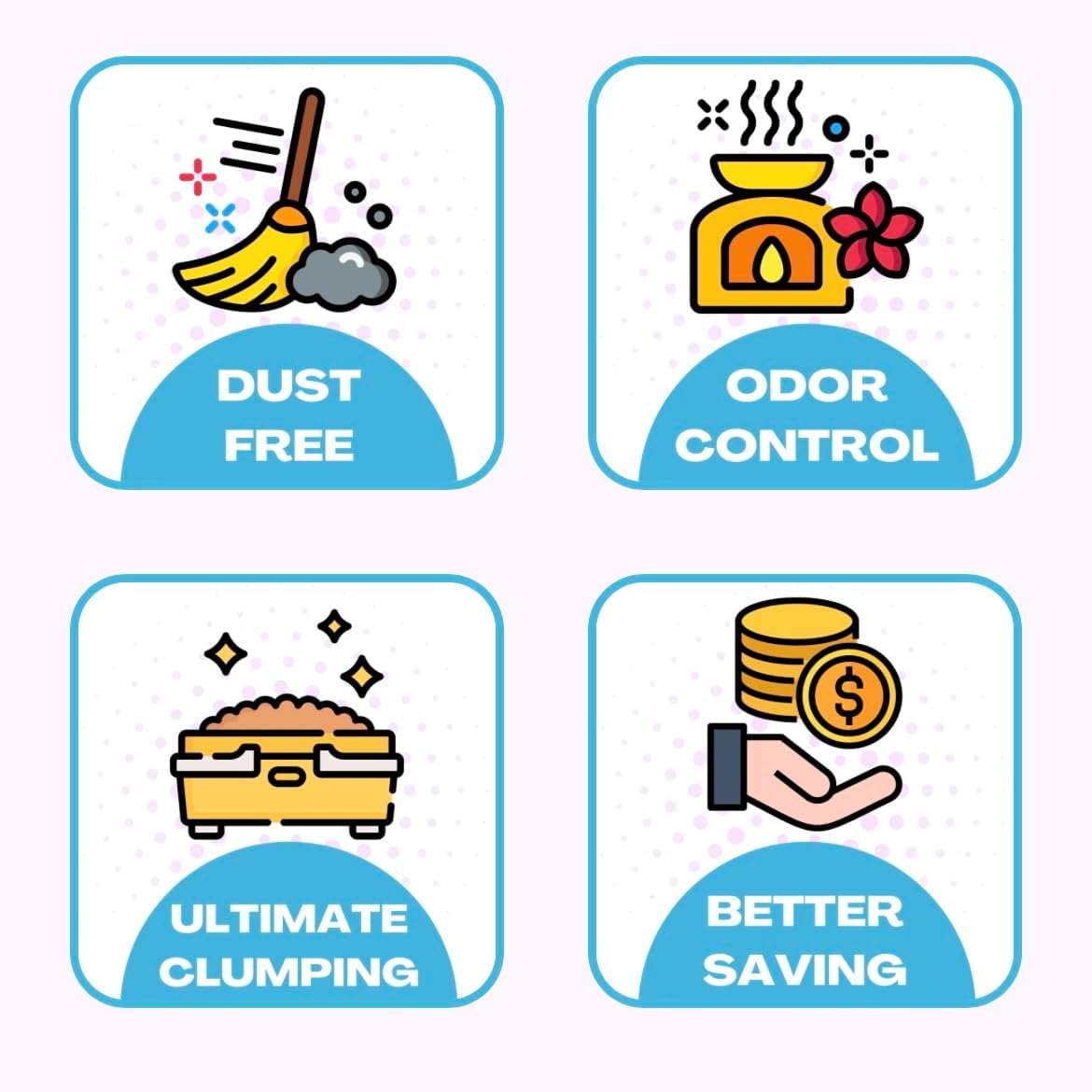 About this item 99.9% Dust Free,100% Natural Cat Litter to keep your surfaces clean and perfect for families . Hard Clumping, Medium-Grain clay makes it the perfect clumping litter that helps prevent moisture. Multi-Cat formula keeps your home smelling clean and fresh day in and day out. Ideal for sifting and mechanical litter boxes so it’s easier for you to dispose of your kitty’s waste. Easy Clean-Up and Quick and Tight Clumping that don’t break down making easier to Scoop up and clean the box twice daily. Premium Multi-Cat Formula Cat Litter Made from 100% Natural Unscented Bentonite Clay Activated Carbon and Silica. Absorbent, No Dust Formula, Non-tracking & Pet Friendly. › See more product details