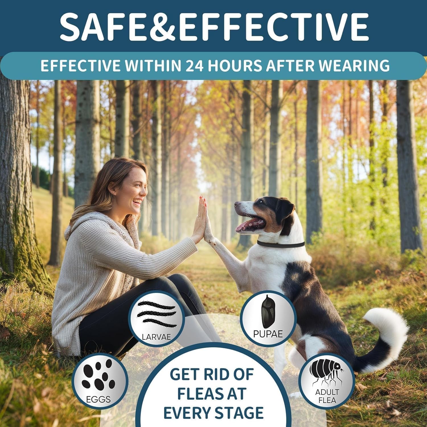 About this item Safe & Effective Protection:Worry-free pet care is now within reach with our flea and tick collar for dogs. Crafted with advanced natural formulas, it provides immediate protection against fleas and ticks within 24 hours, ensuring your dog's comfort and health. Extended 32-Month Protection:Enjoy peace of mind with our 4-pack collars, offering a total of 32 months of flea and tick prevention. Each collar delivers 8 months of continuous protection, eliminating the need for frequent replacements. Comfortable & Adjustable Design:Designed for all dog breeds, our dog flea collars are flexible, adjustable up to 65cm, and feature a soft, lightweight texture. The metal clasp ensures a secure fit without causing discomfort or irritation. Non-Greasy & Water-Resistant:Our dog tick collars are water-resistant, allowing your dog to enjoy outdoor activities in any weather. The non-greasy formula is easy to handle, leaving no residue on your dog's fur or your hands. Stylish Flea Collar for Dogs:Available in multiple stylish color options, these collars not only provide protection but also add a fashionable touch to your dog's look. Suitable for daily use and as an accessory to your dog's regular collar. › See more product details