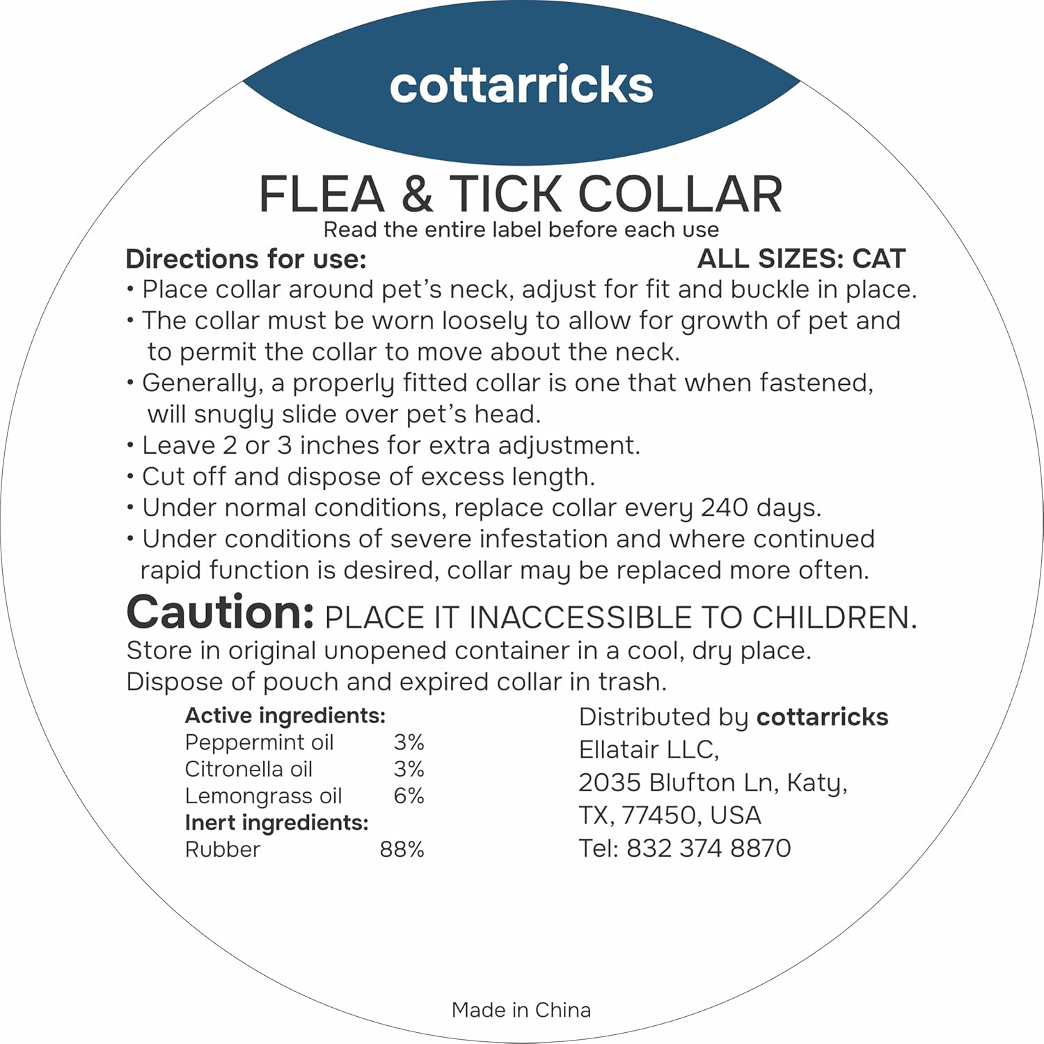 Here at COTTARRICKS, we treat pets as full family members and strive to develop innovative, reasonably priced pet care supplies that are meant to make owners’ jobs easier, while not interfering with pet safety or comfort. We make sure to employ thoroughly tested, natural active ingredients and carefully selected manufacturers, in order to meet all international standards. Not entirely happy with what you received? Tell us all about it and our customer care department will quickly address the situation! Adjustable Length Cat Flea and Tick Collar for Uninterrupted Long-Lasting Protection The COTTARRICKS flea and tick prevention for Cats enjoys an upgraded slow-release system that prologs its effects, improving protection by stopping the tick from biting instead of acting after the actual bite, thus minimizing risks for your Cat’s wellbeing! Featuring an adjustable easy to cut design, with no weird smells or uncomfortable irritating texture, this Cat flea collar will certainly become your no. 1 helper when combatting such problems! Not entirely convinced? Here are some of the amazing features of this flea collar: Suitable for all Cat sizes and breeds, from small, medium, large; Adjustable size with easy to cut design; Slow release system of active ingredients; Waterproof and bath friendly; Protects against ticks, chewing lice, adult fleas, eggs; Original gift choice for pet owners. Make sure your beloved furry friend enjoys excellent care all year round with this practical tick and flea control for Cats!