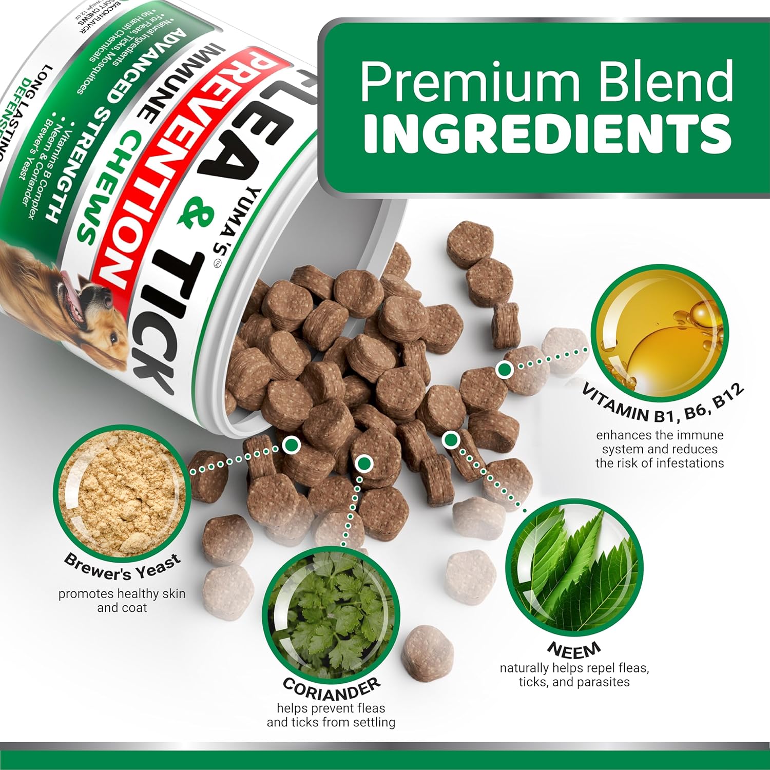 About this item Natural Flea & Tick Prevention: Defend your dogs from pests the natural way with our flea prevention for dogs - a safer alternative for itch-free protection Optimal Protection: To achieve the best outcomes, administer our chewable flea and tick prevention tablets to your dog on a daily basis. This helps establish the necessary levels in their system for effective protection. Suitable for All Breeds and Ages: Whether you’re caring for a teacup pup or a gentle giant, our flea chews for dogs are designed to keep dogs of all breeds and ages happily protected Veterinarian Formulated & USA Made: Trust in the premium quality of our dog flea & tick control chews, which are formulated by veterinarians and manufactured in the USA within an FDA-registered facility Hassle-Free Administering: Forget the struggle of topical treatments - our tasty chicken-flavored chewables make administering flea and tick prevention a treat, not a chore › See more product details